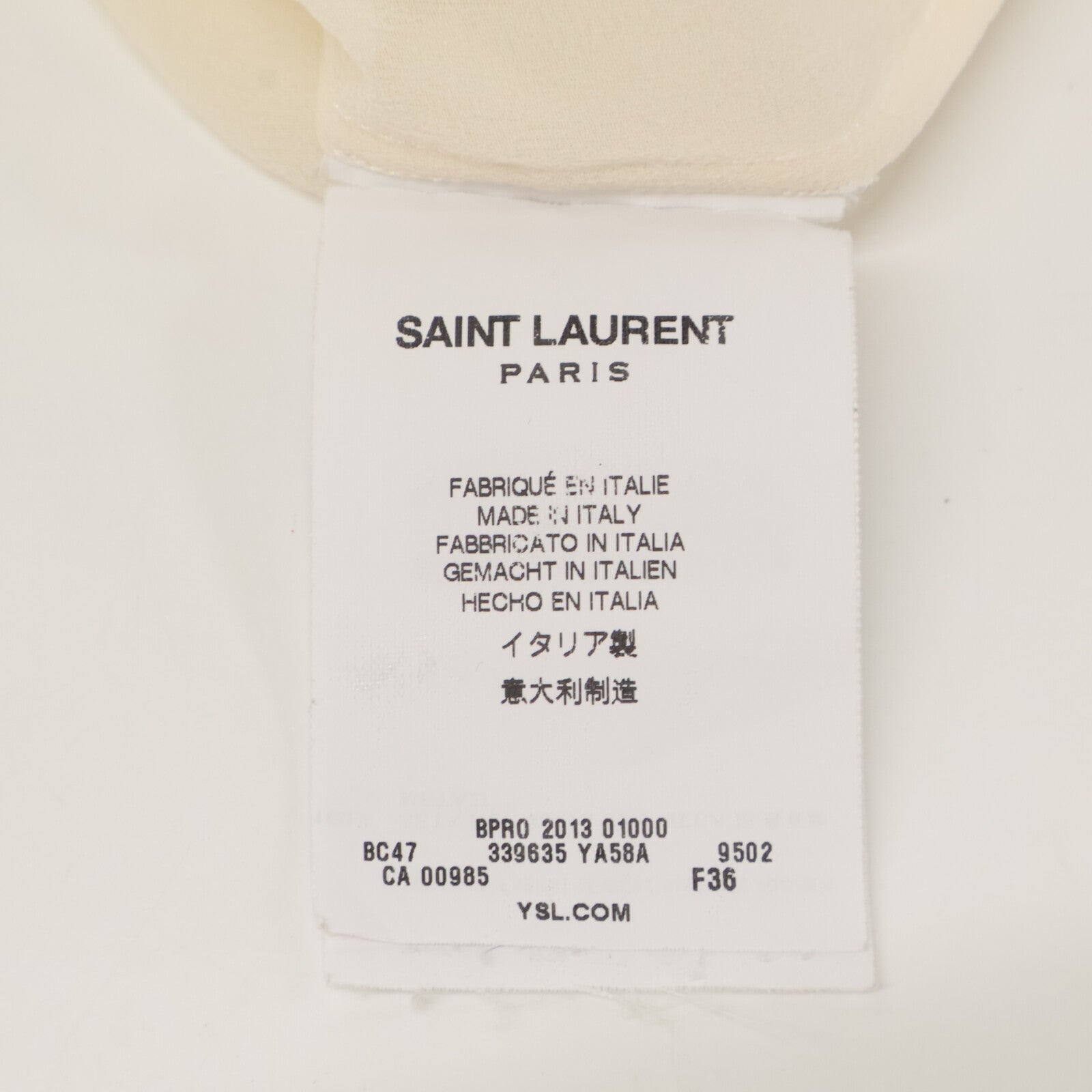SAINT LAURENT PARIS サンローランパリ 13年 アイボリー シルク 339635 YA58A シースルーシャツ エディ期 トップス 36