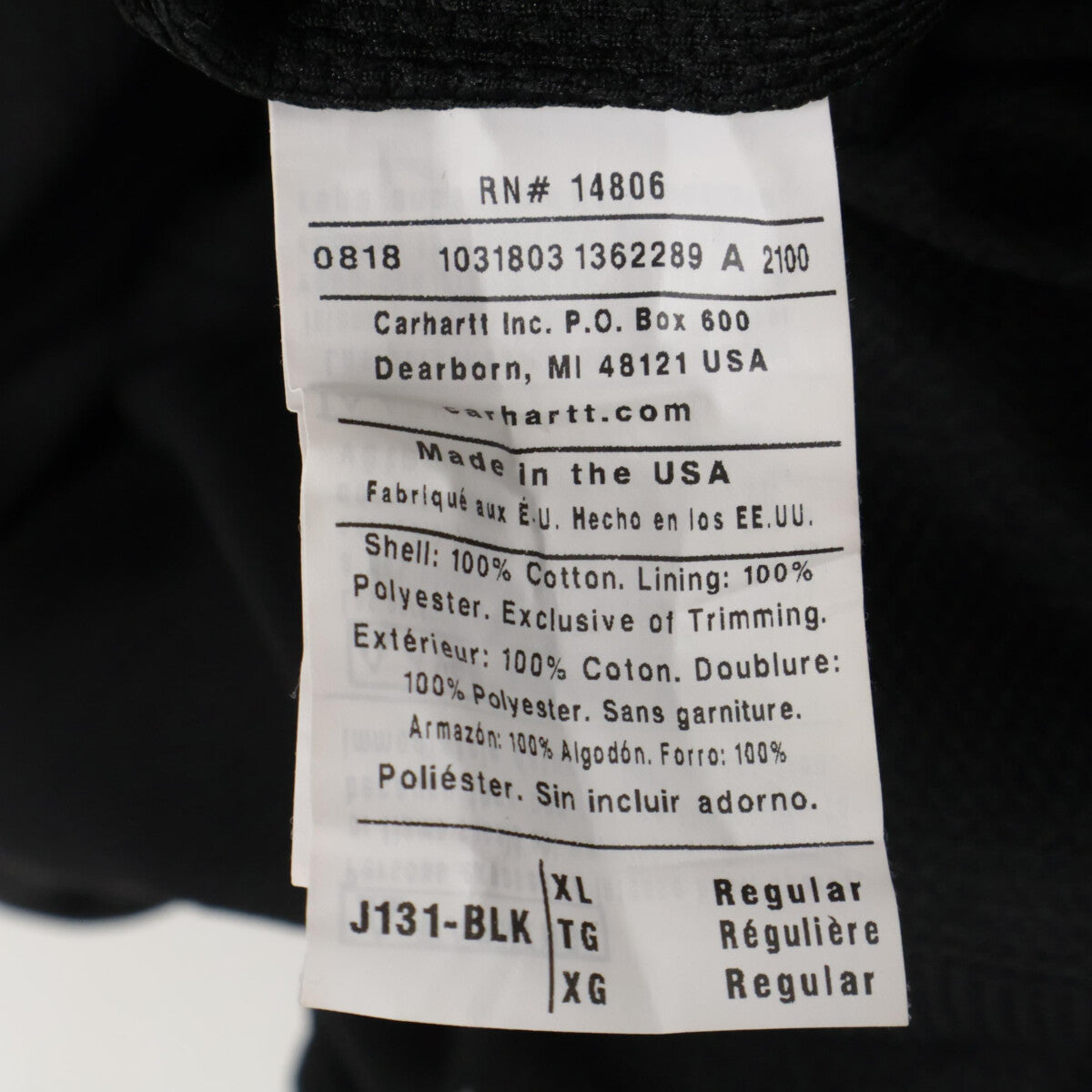 Carhartt カーハート ブラック アクティブ ダックジャケット ジャケット XL