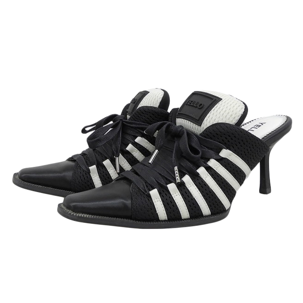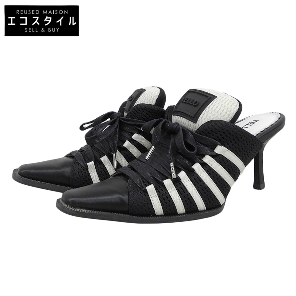 YELLO イエロ 美品 ライン入り スニーカーミュール レディース ブラック×ホワイト S シューズ S