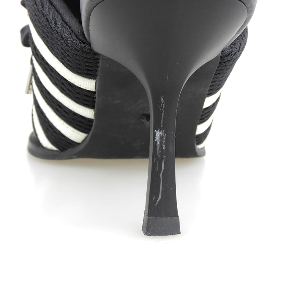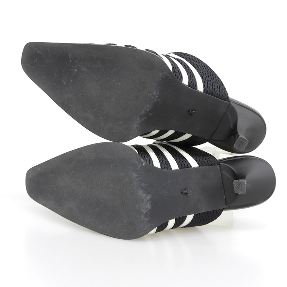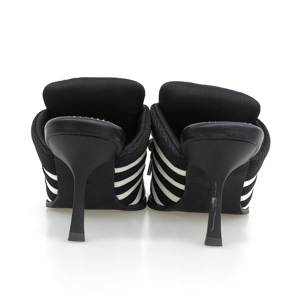 | タイプ | 美品 ライン入り スニーカーミュール レディース ブラック×ホワイト S |