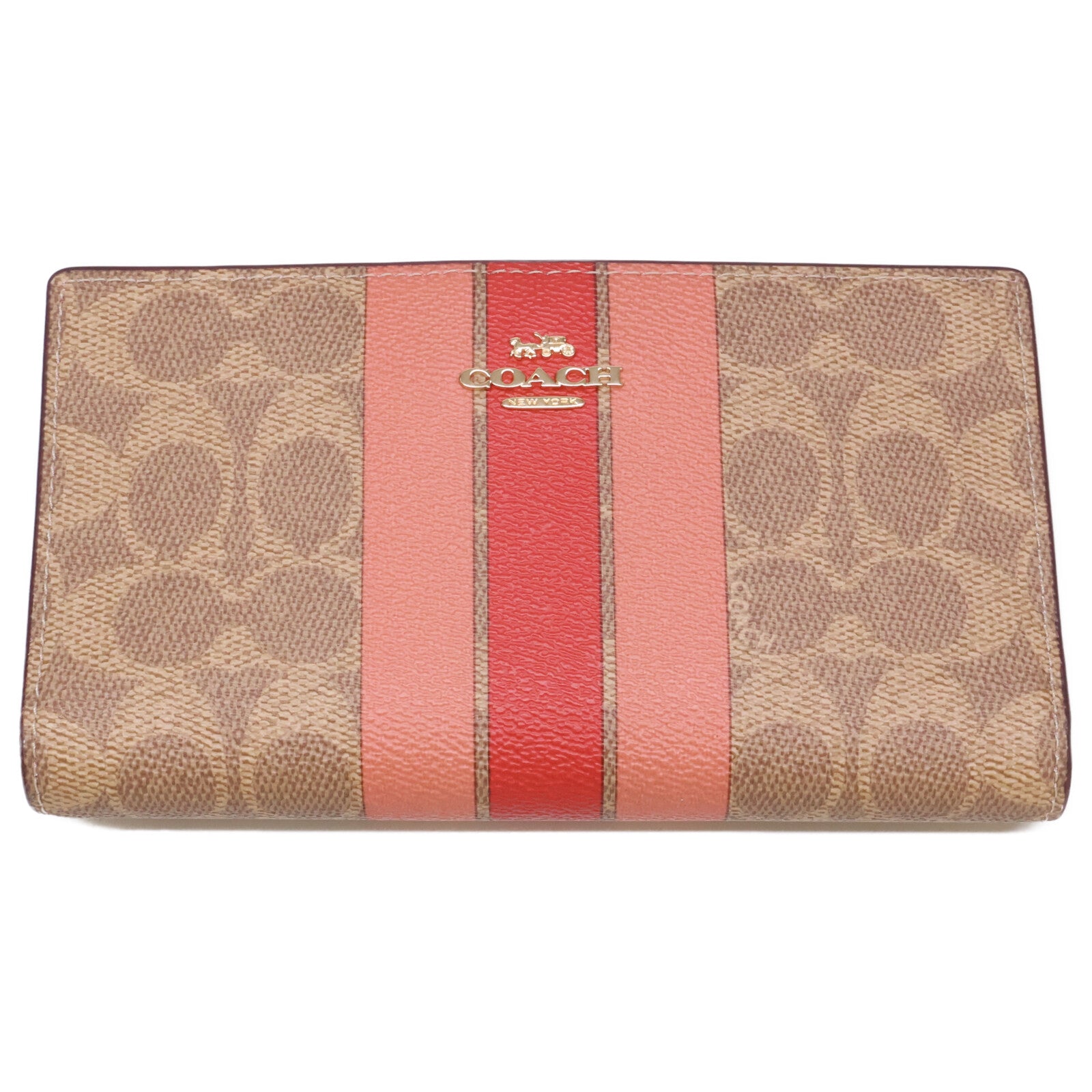 COACH コーチ 【美品】CAP23 スリム ジップ ウォレット・シグネチャー キャンバス・ストライプ 二つ折り財布(小銭入れあり)