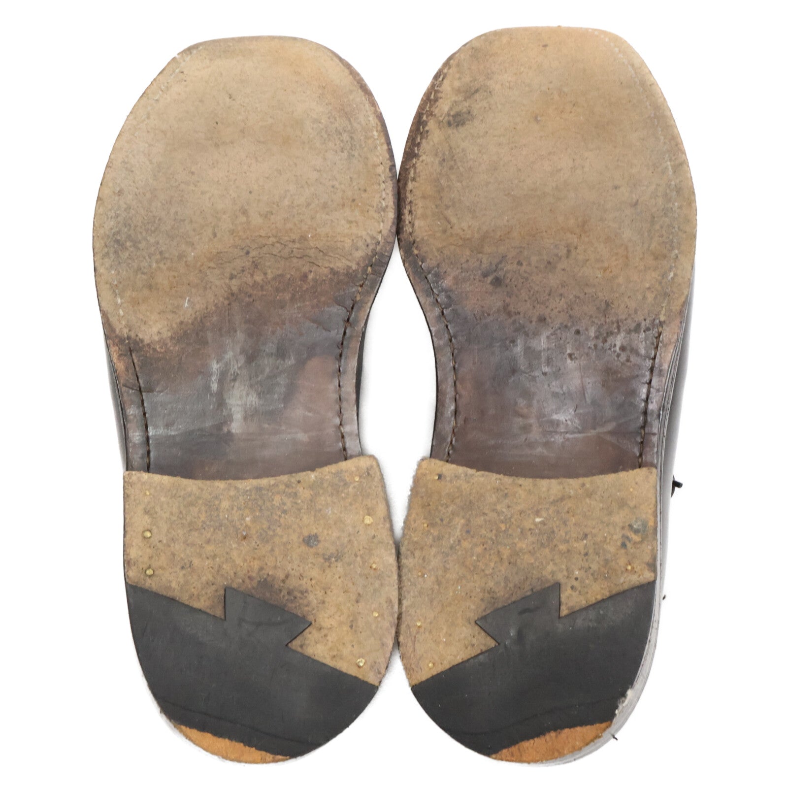 目立つ傷や汚れ、使用感のあるお品物でございます。両足の甲部分に履き皺、つま先・踵ソールに減りがございます。 両足のインソールに使用感がございます。 |