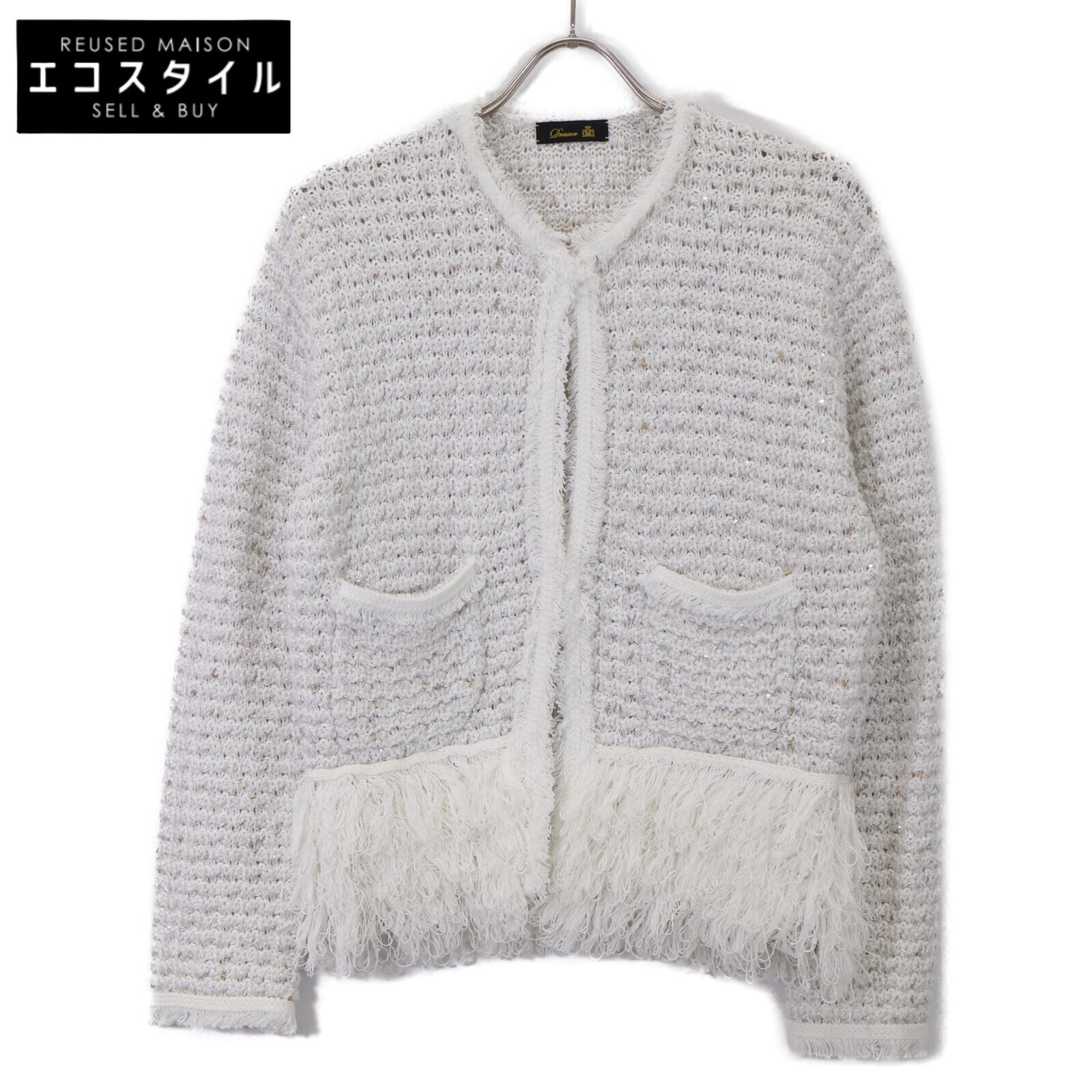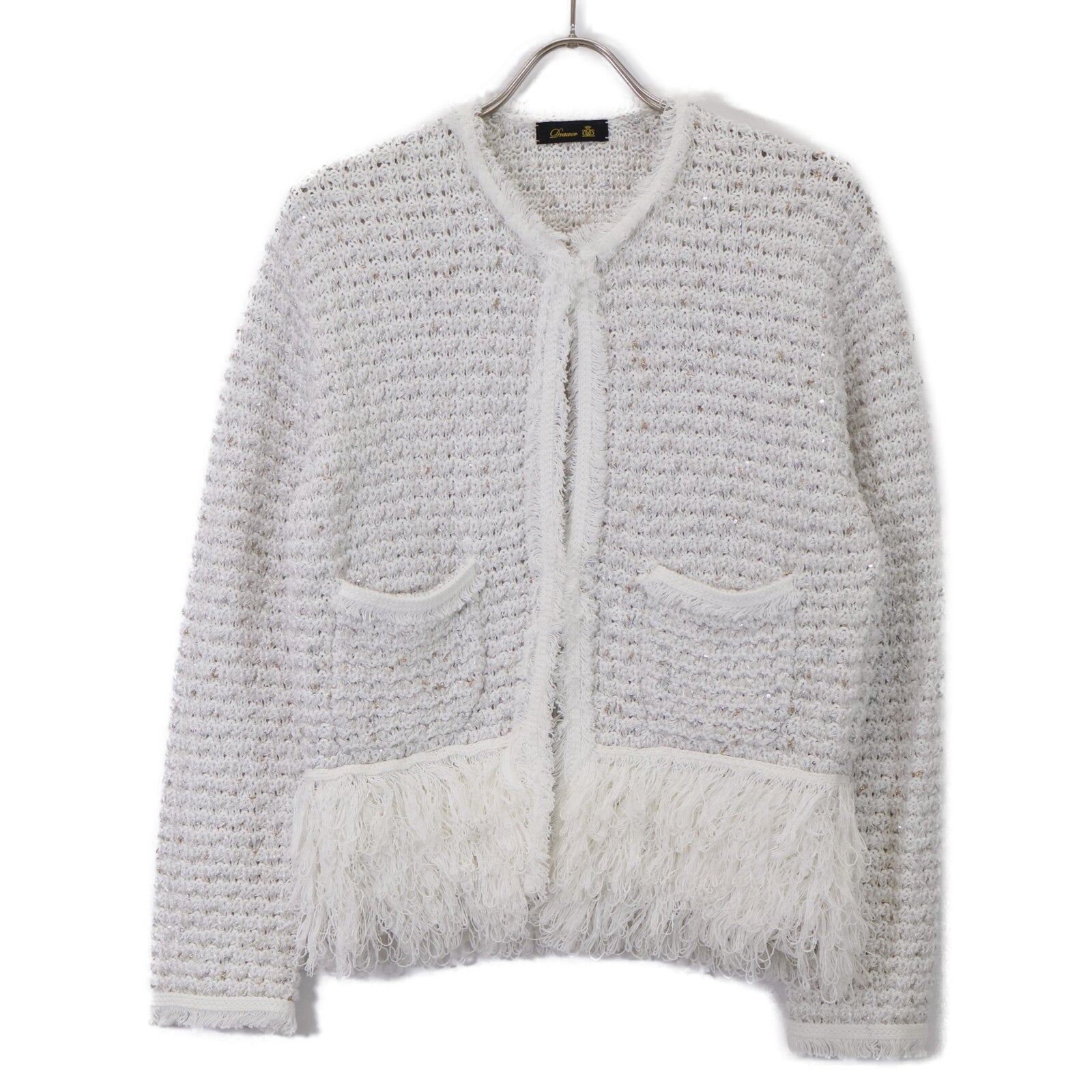 DRAWER ドゥロワー 6515-199-0600 フロントフック ノーカラーツイードニットジャケット ジャケット F