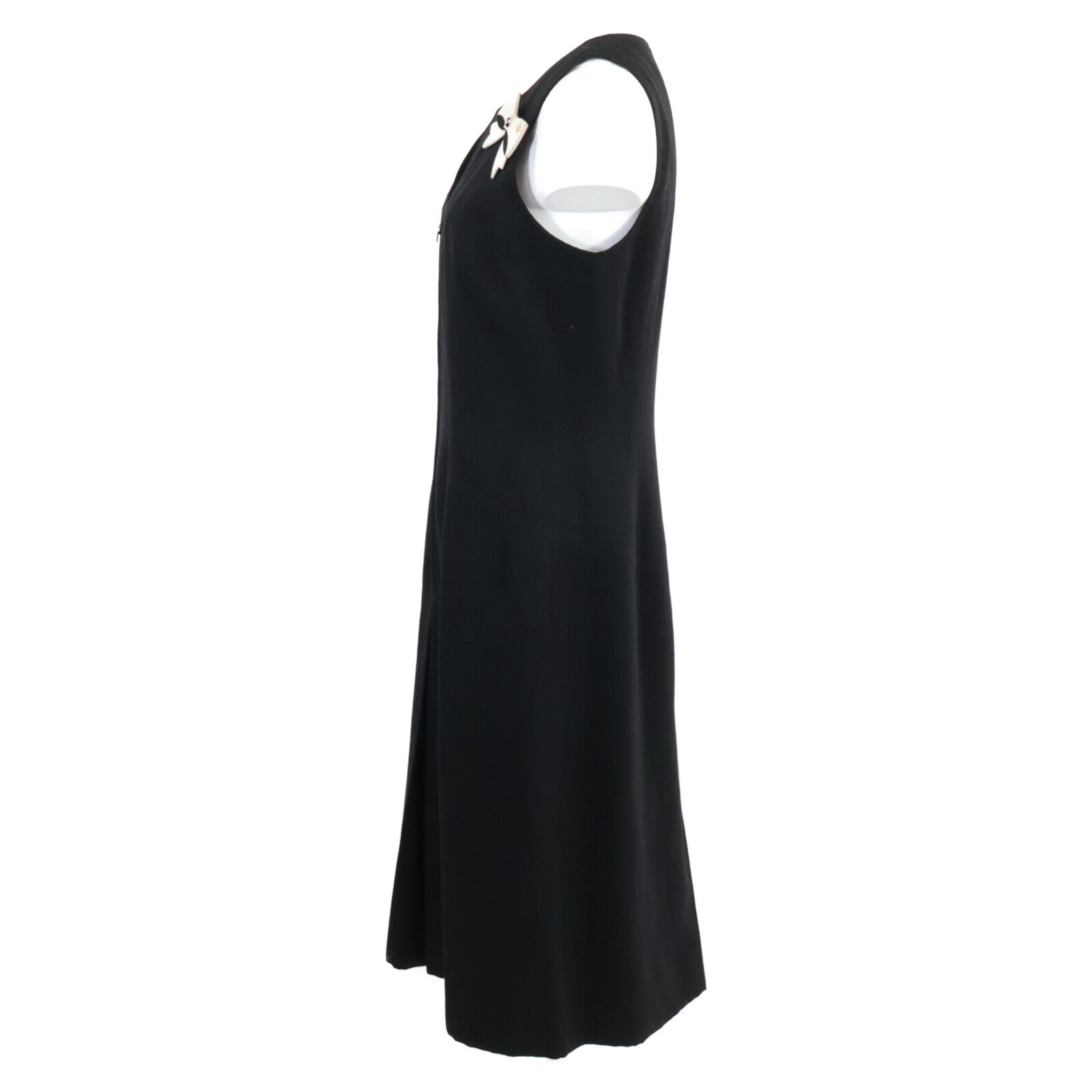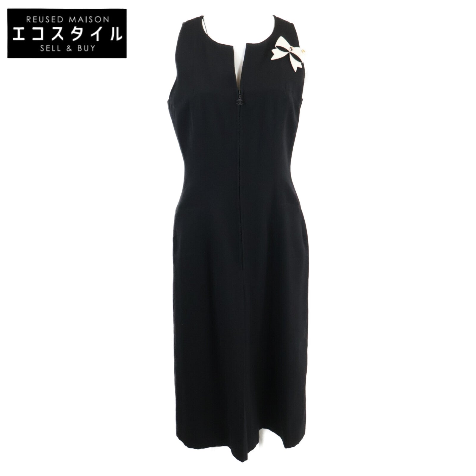CHANEL シャネル 02A P191712 リボンブローチ付き ココマークジップ ノースリーブ ワンピース 38