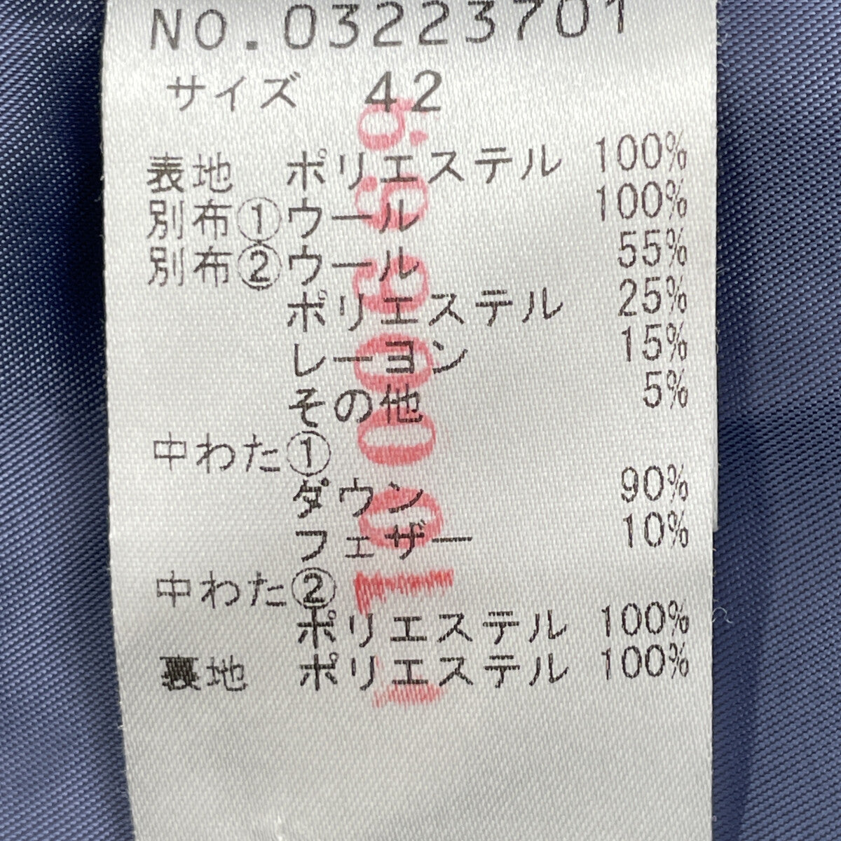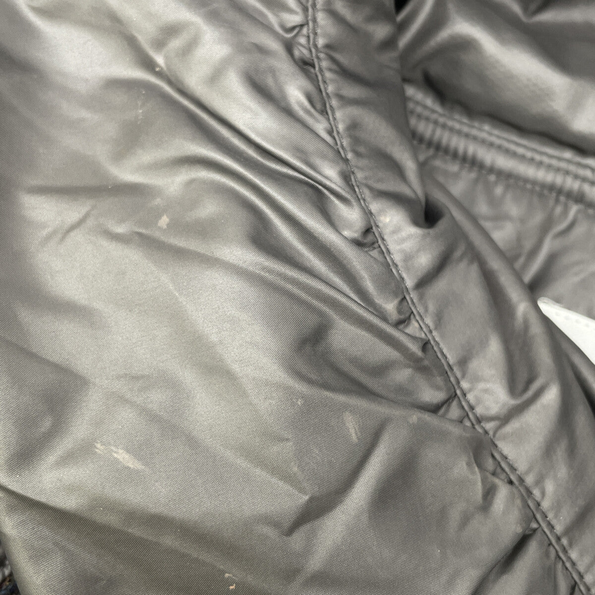 背面裾付近に擦れがございます。 袖口に擦れがございます。裏地左肩付近によごれがございます。 |
