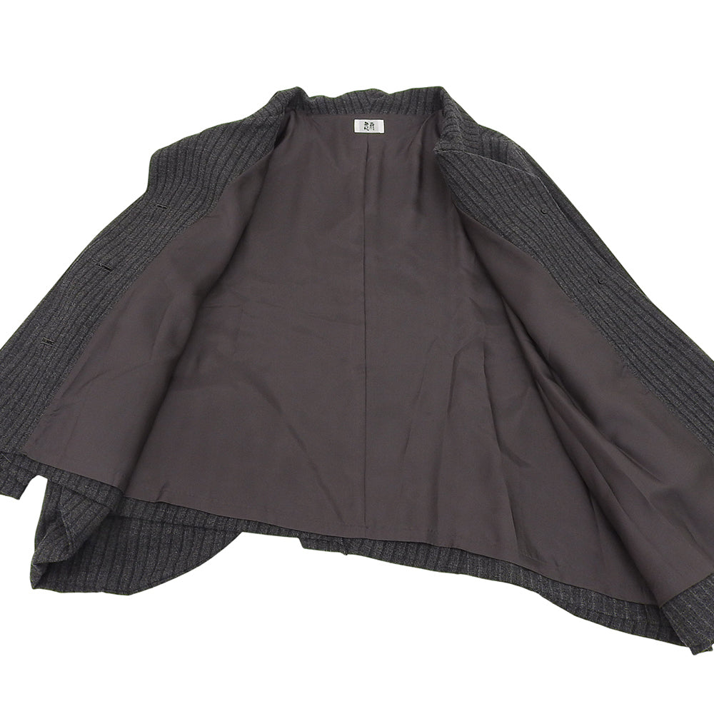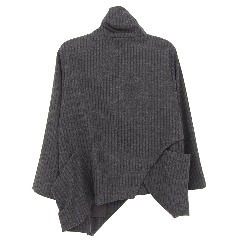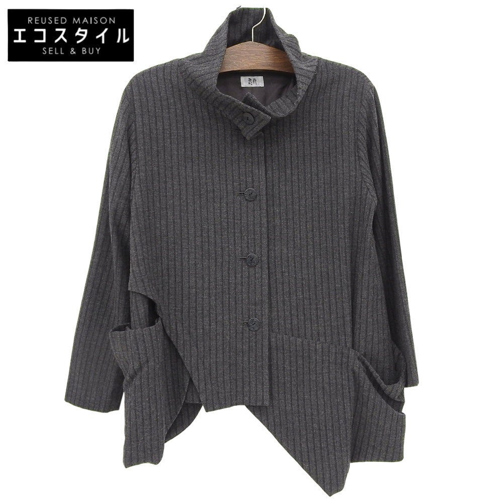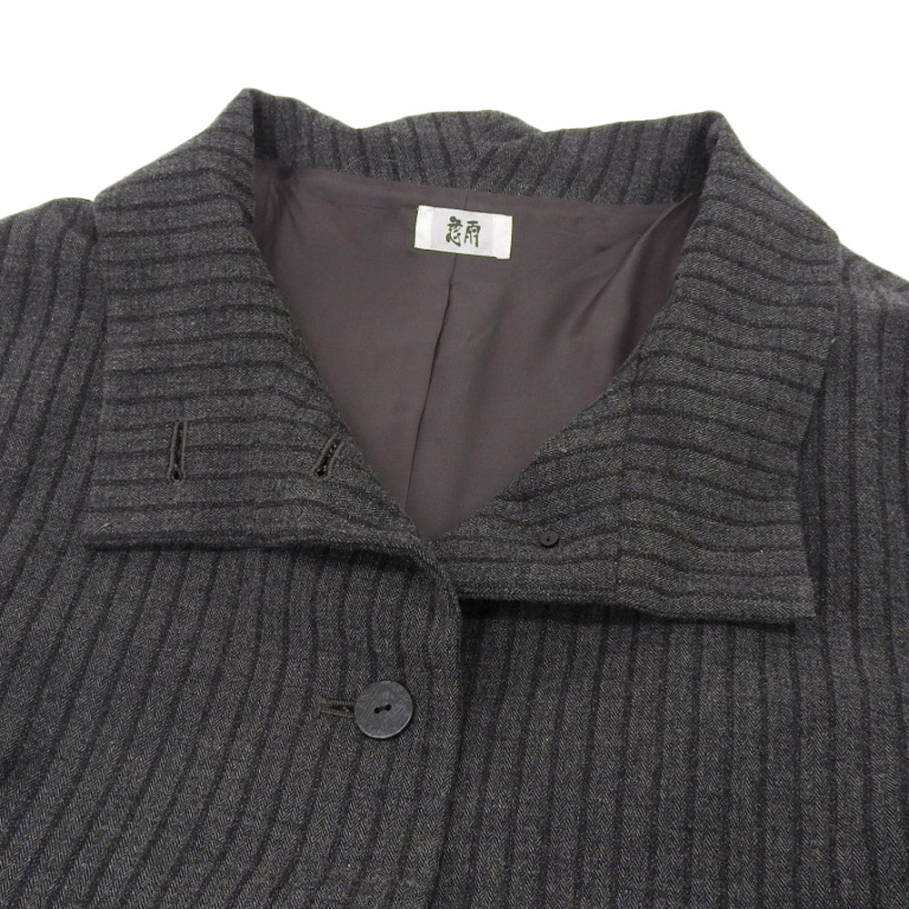 慈雨 ジウ ストライプ アシンメトリー スタンドカラー Aラインコート レディース チャコールグレー 40 コート コート 40