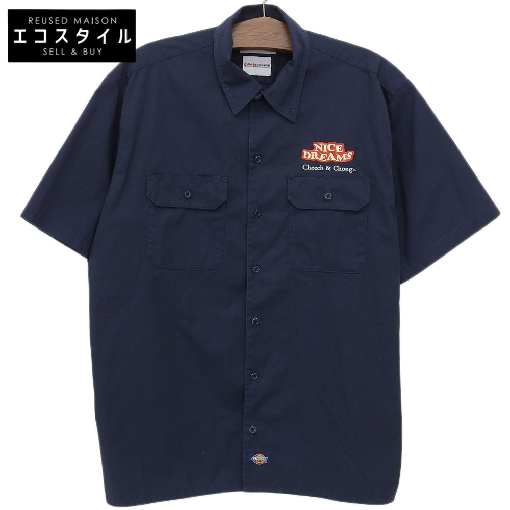 WACKO MARIA ワコマリア ロゴ刺繍 ワークシャツ トップス メンズ ネイビー L トップス L