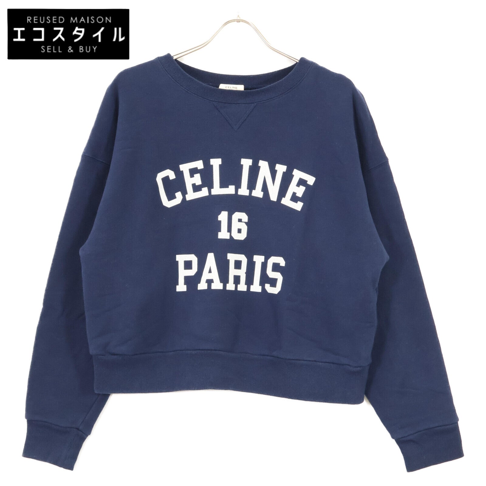 CELINE セリーヌ 2Y09E649W ネイビー クラック加工 スウェットロゴトレーナ トップス L