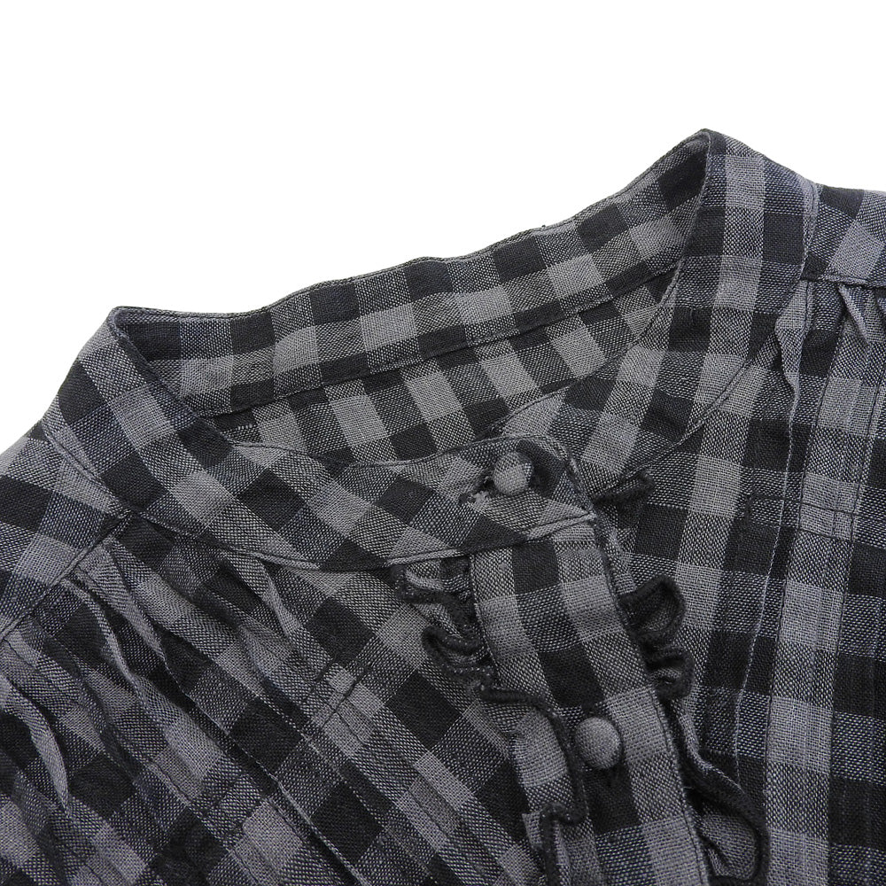 ubasoku ウバソク 美品 バンドカラー ピンタックフリル付き ワンピース レディース グレー×ブラック F ub-0134 グレー/ブラック ワンピース F
