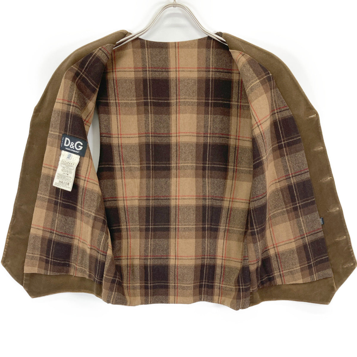 D&G ディーアンドジー ブラウン モールスキン×チェック ベスト ベスト 32/46