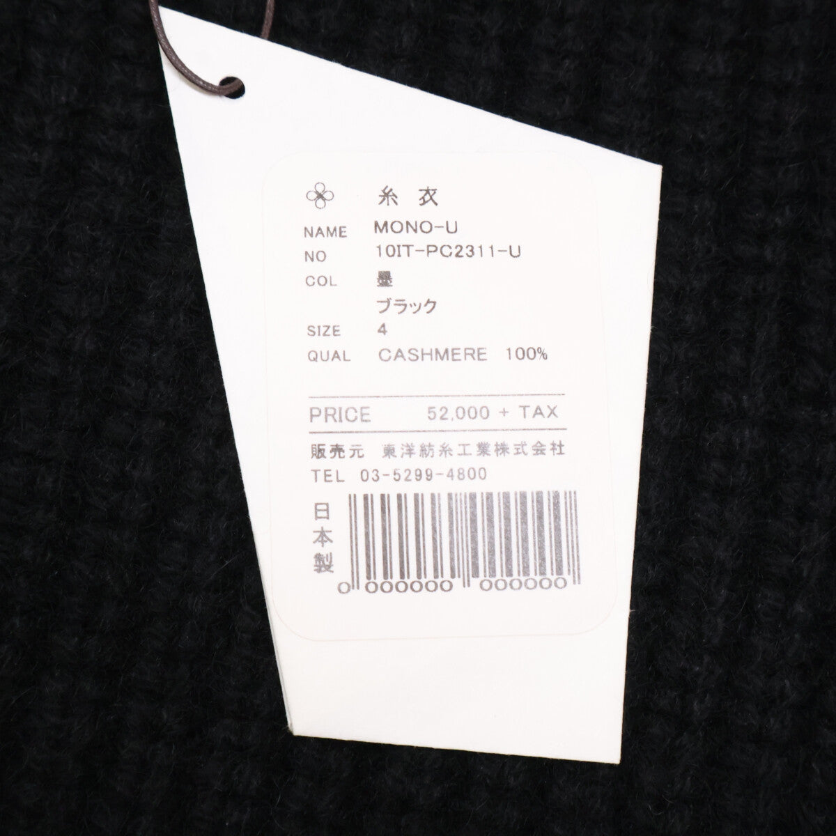 | タイプ | 糸衣 MONO 10IT-PC2311 ブラック カシミヤ100 ニット ベスト |