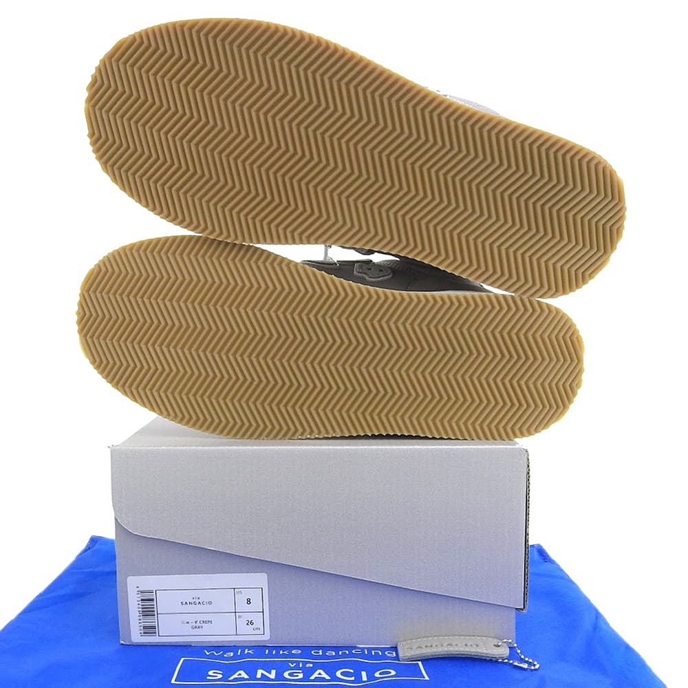 Sangacio サンガッチョ 新品同様 にゅ~ず CREPE GRAY レザー スニーカー シューズ メンズ グレー 26cm シューズ 8(US)