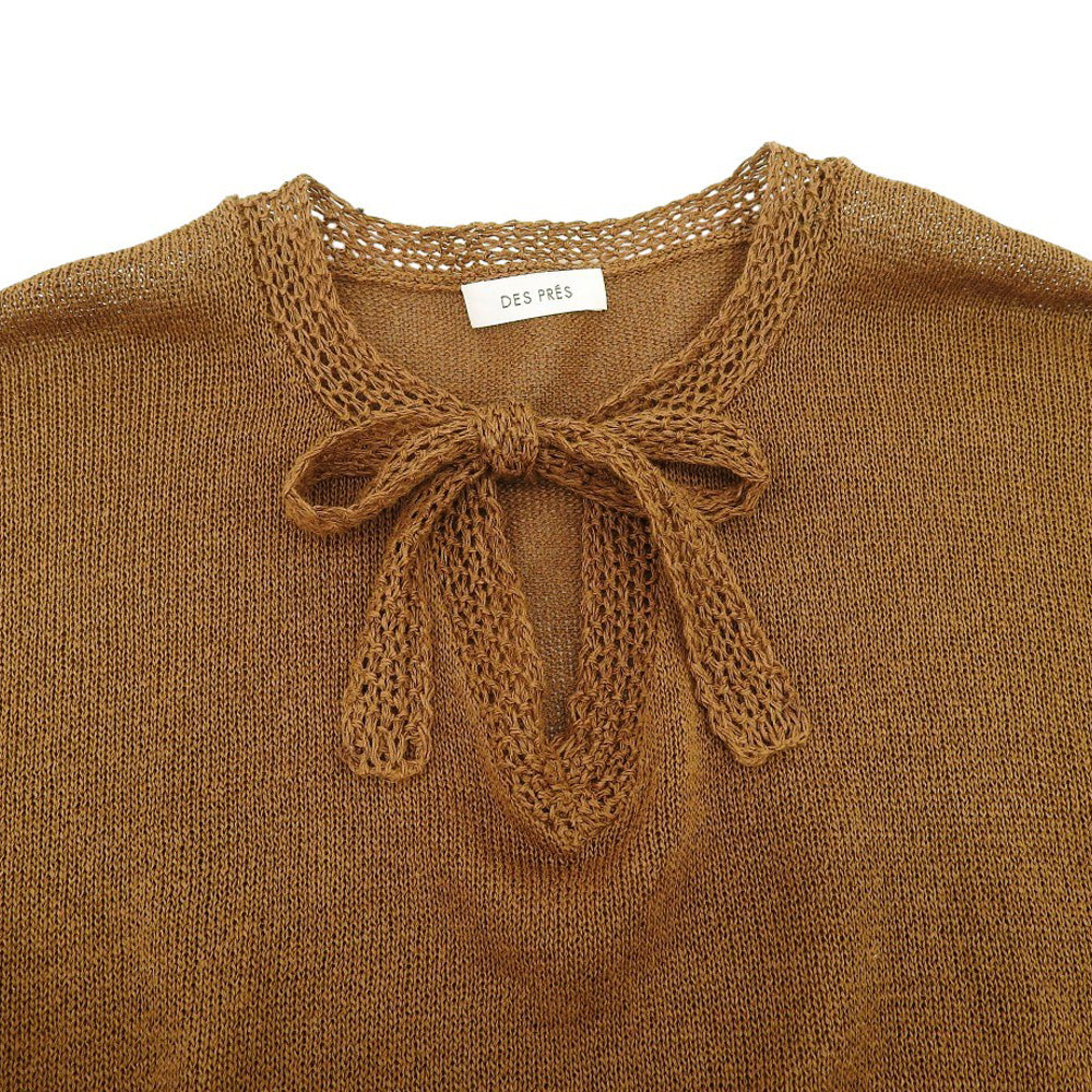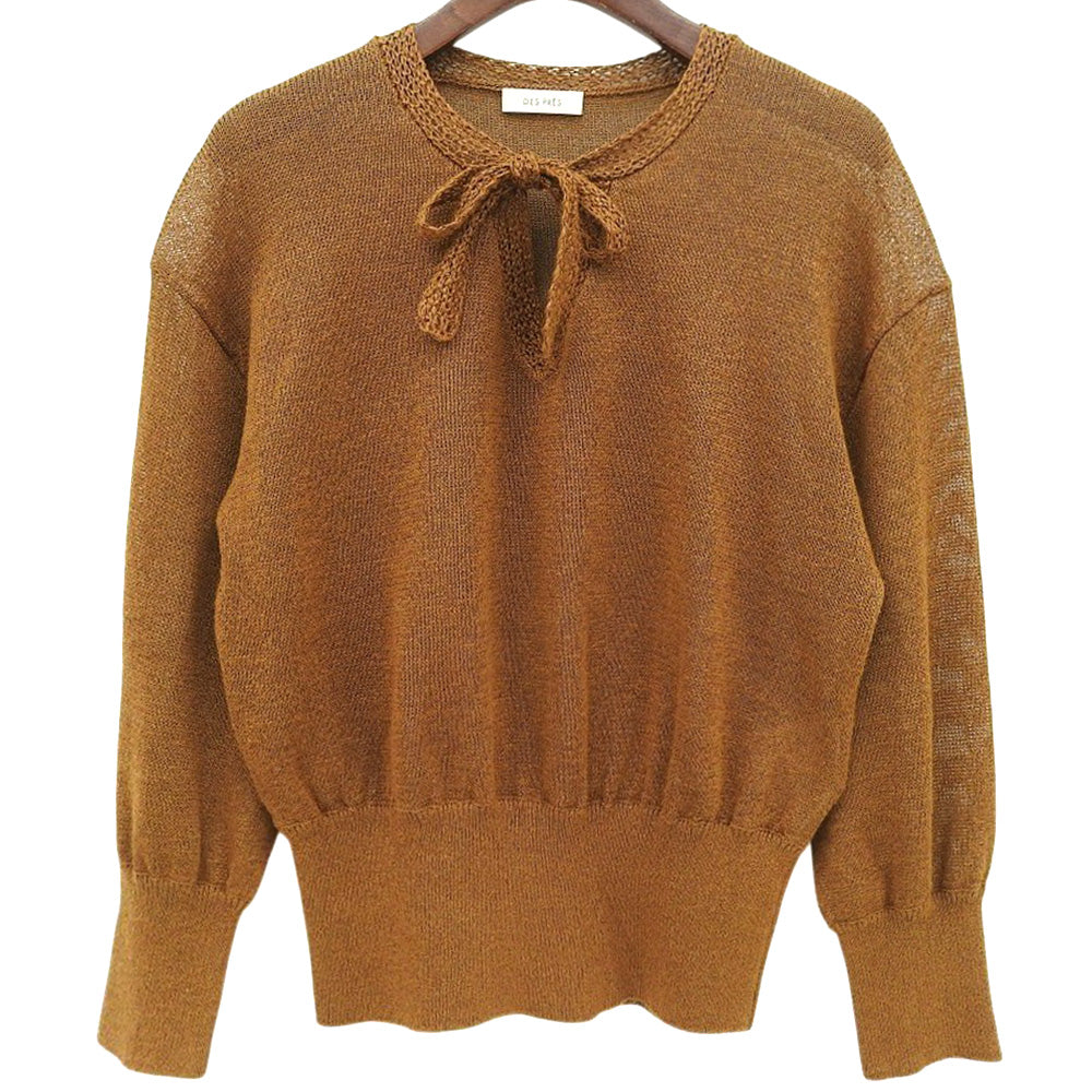 DES PRES デプレ 美品 コットンシルクペーパーツイスト Vネックプルオーバー トップス レディース ブラウン F 22-02-51-02308 25SS トップス F