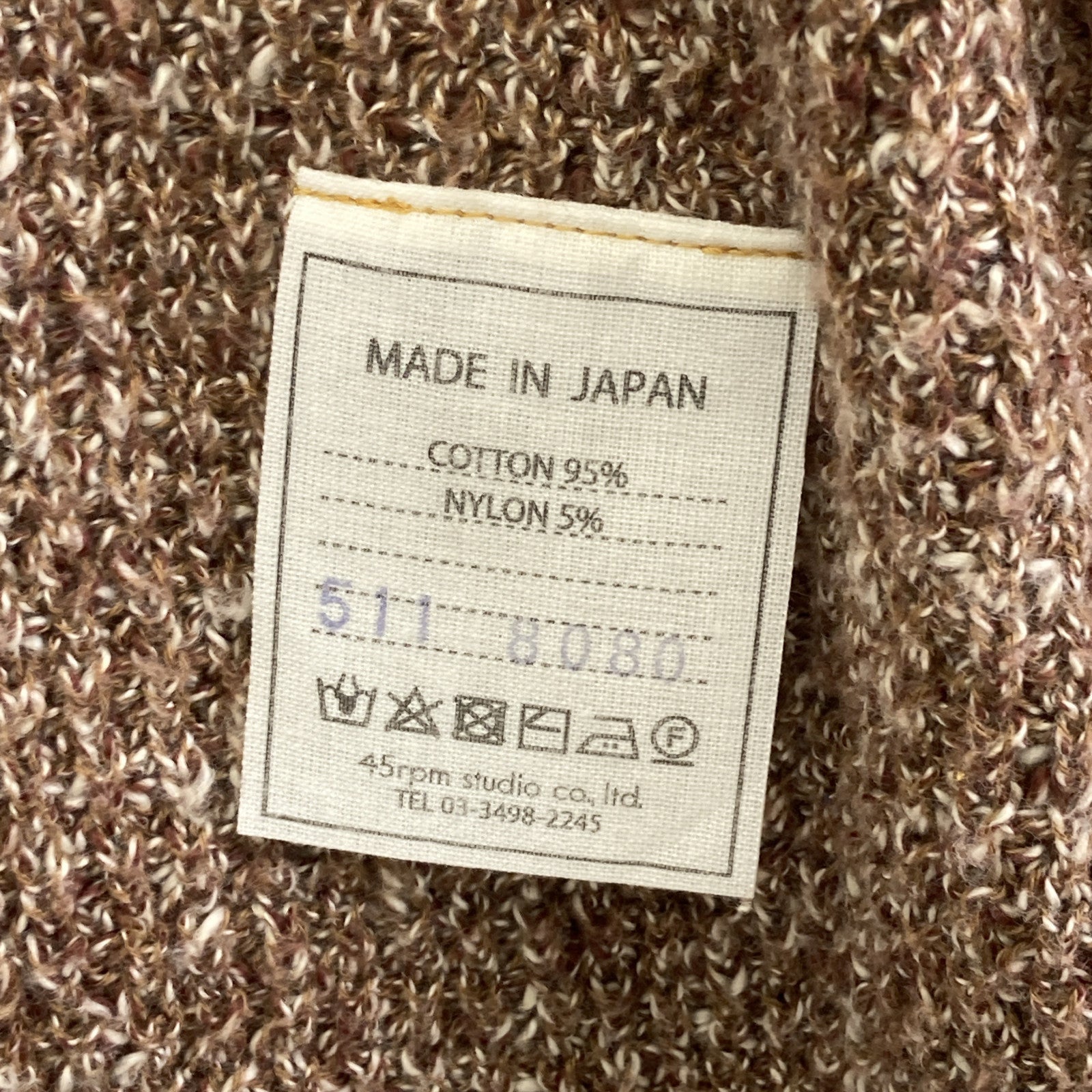 45R フォーティファイブ アール ブラウン 5118080 杢杢ワッフルニットソー カーディガン トップス 表記なし