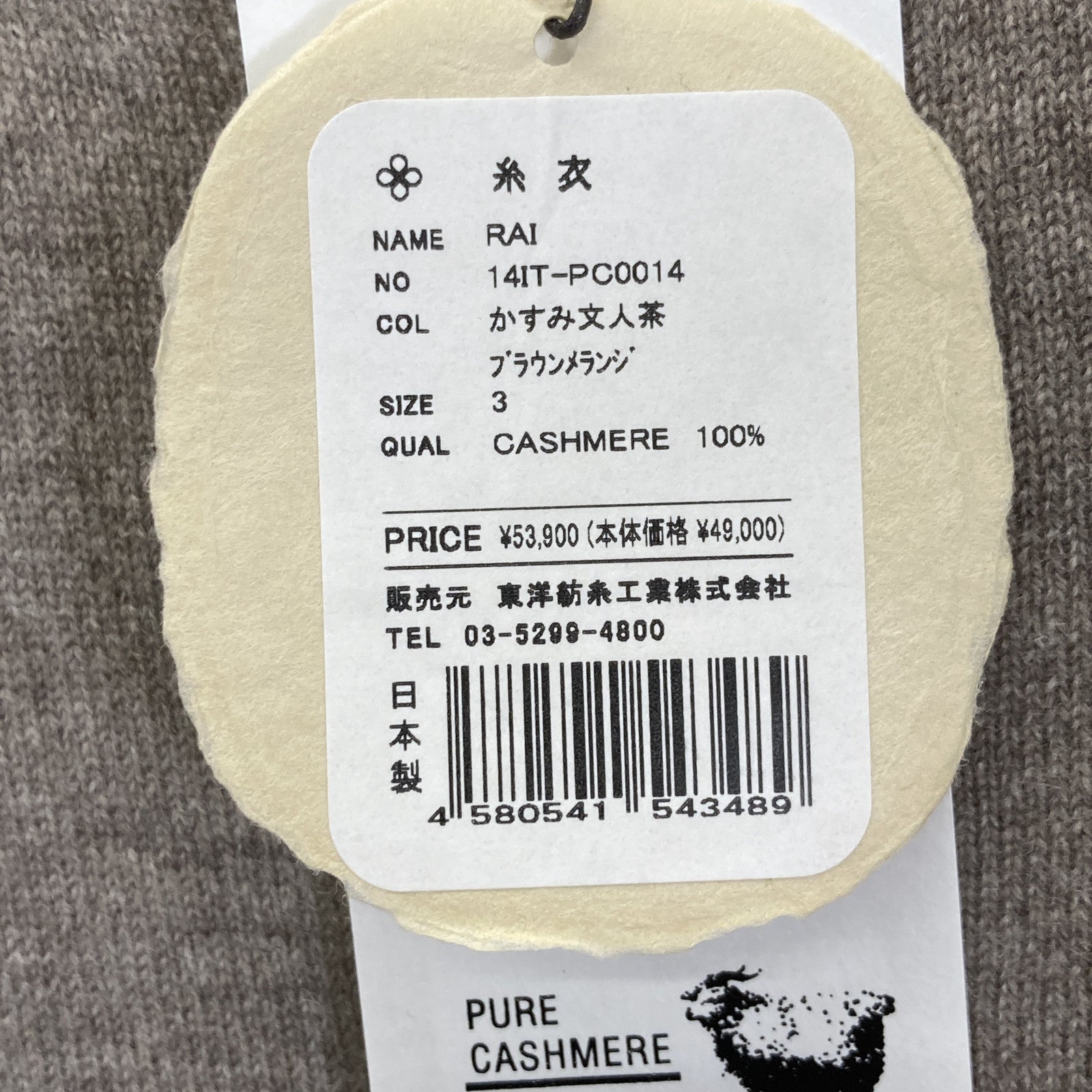 TOYOBOSHI トウヨウボウシ 糸衣 RAI ブラウン 14IT-PC0014 カシミヤカーディガン トップス 3