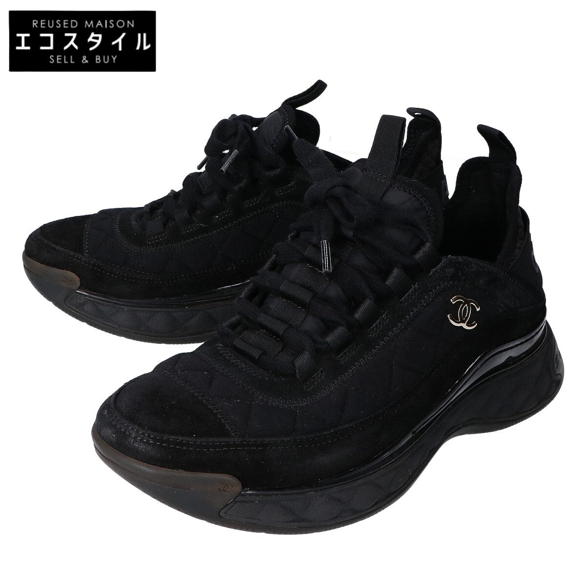 CHANEL シャネル G38501 ココマーク マトラッセ キルティング スエード スニーカー シューズ 36