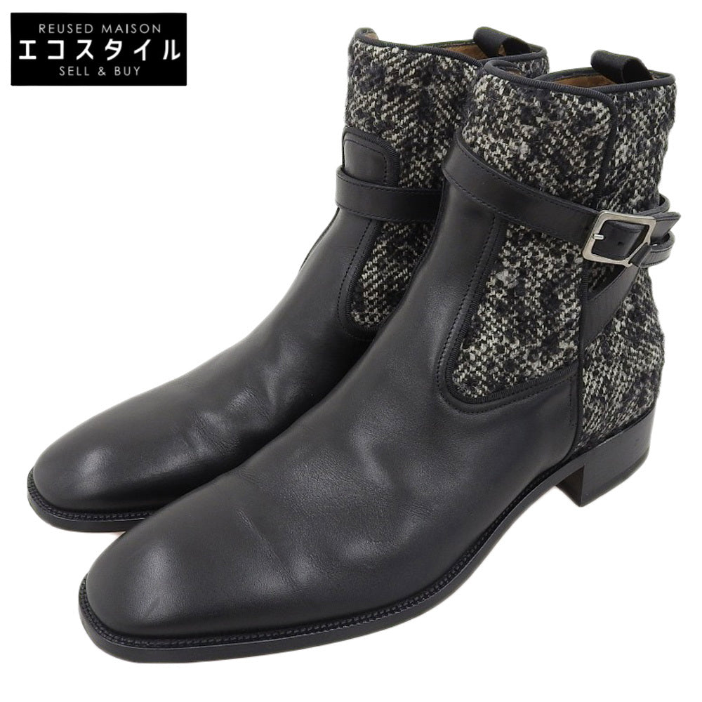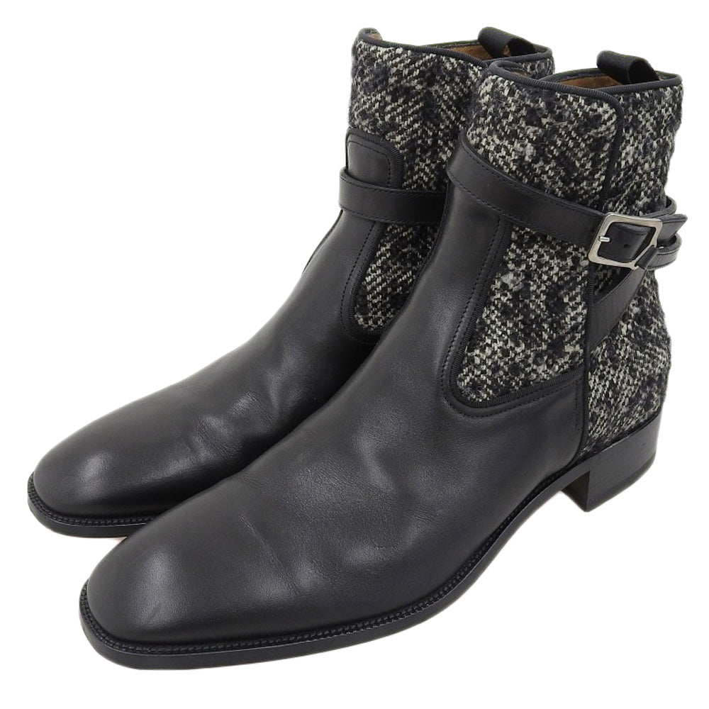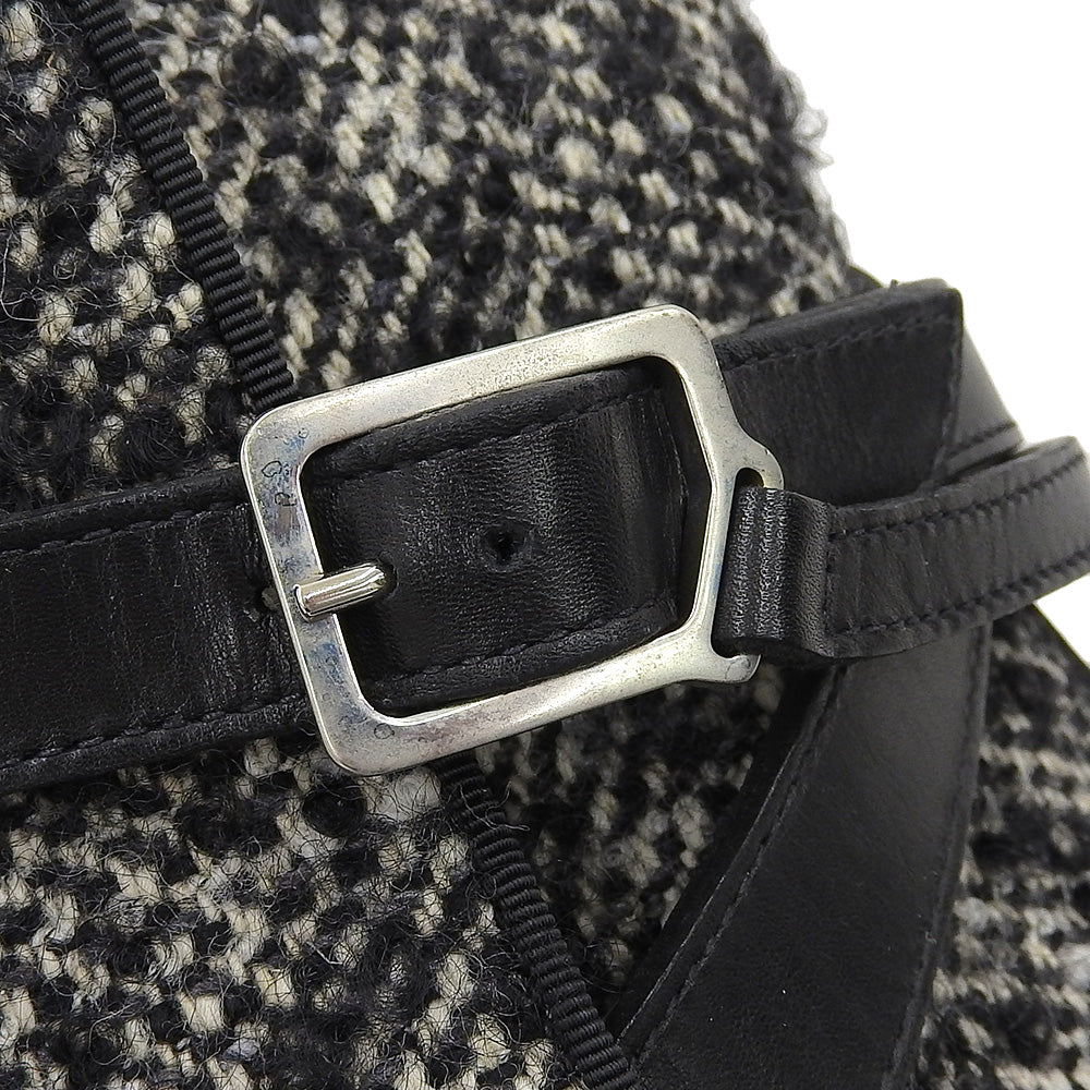 | タイプ | ストラップ ブーツ レザー×ツイード メンズ ブラック×グレー 43 |