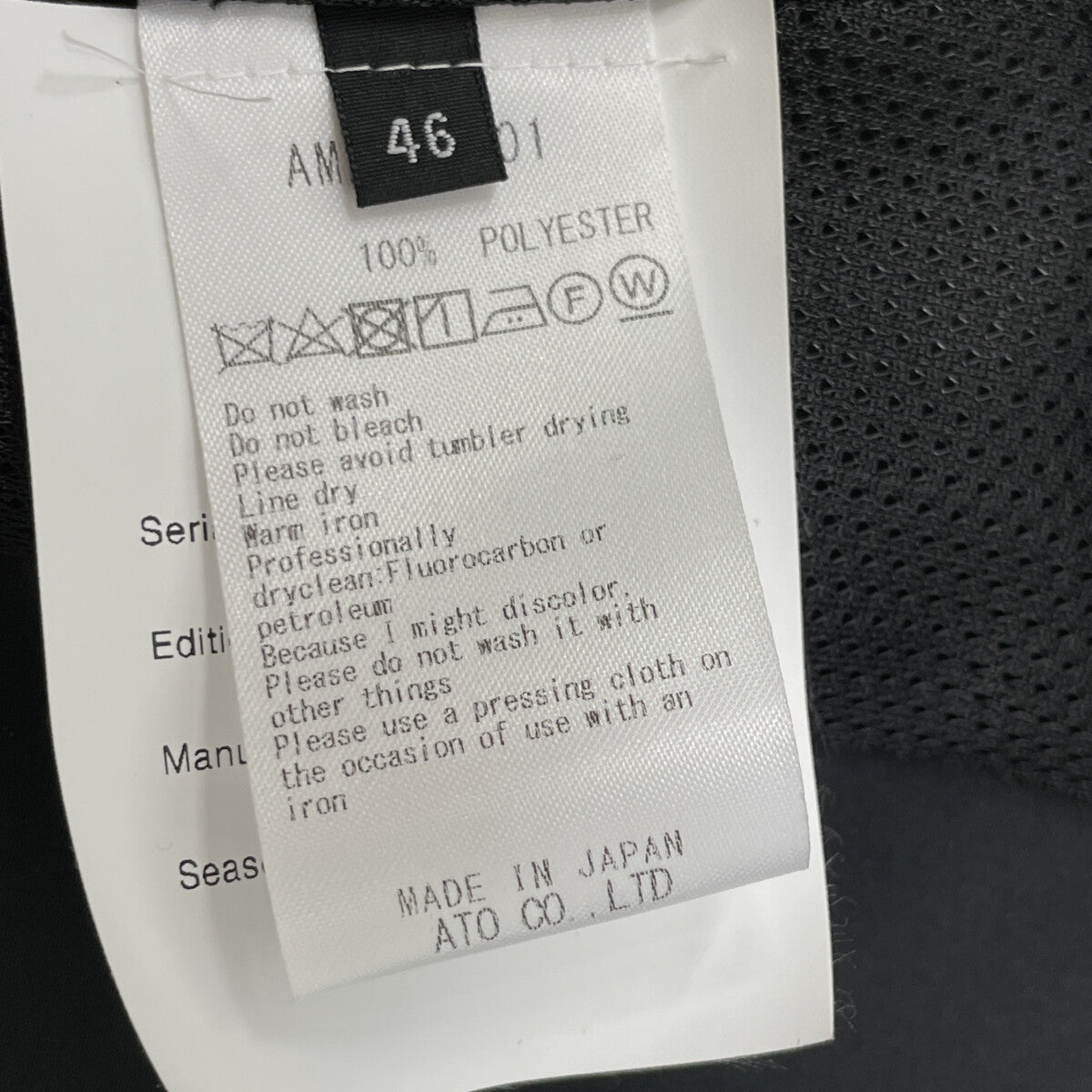 ato アトウ ブラック AM24A-B01 スタンドカラーブルゾン ジャケット 46
