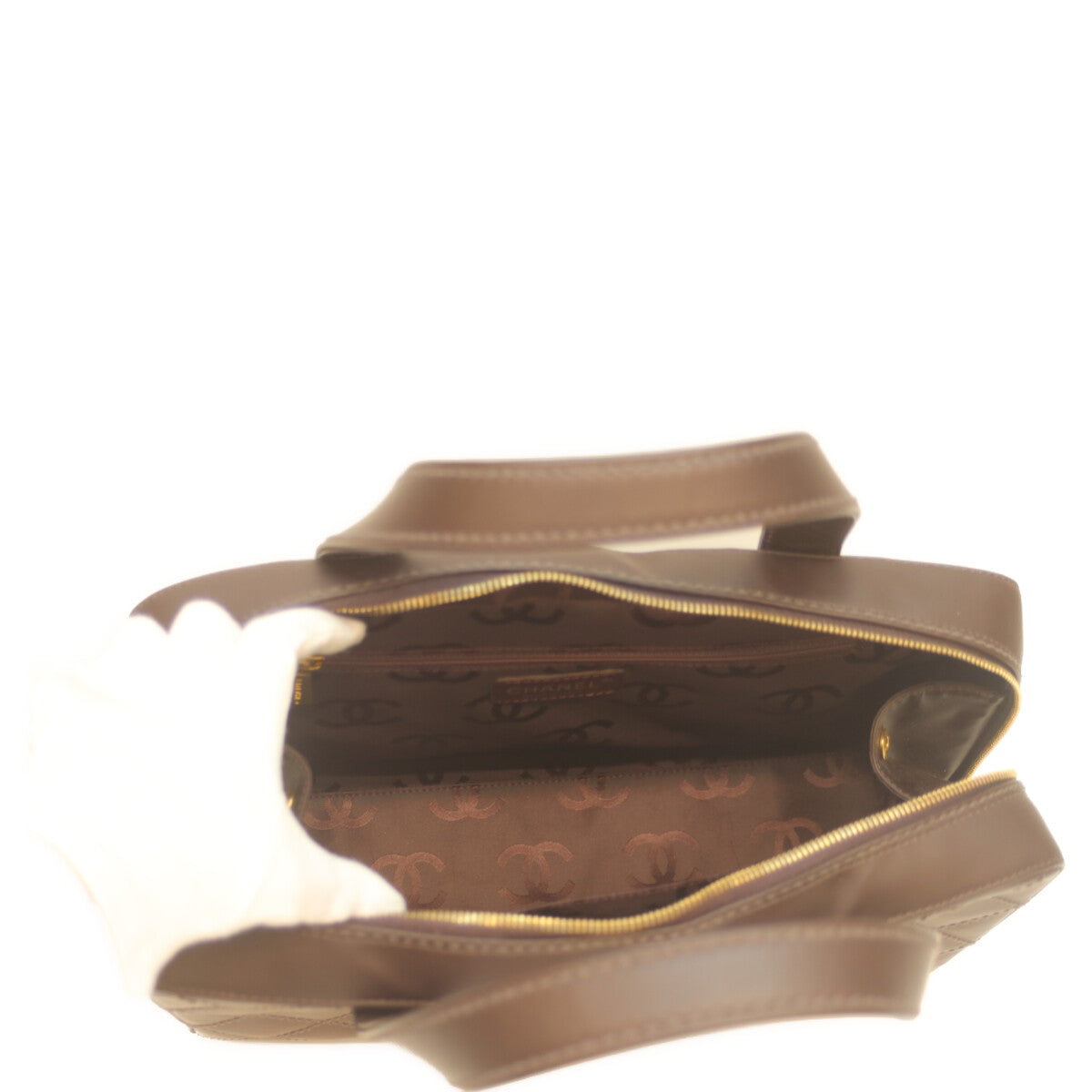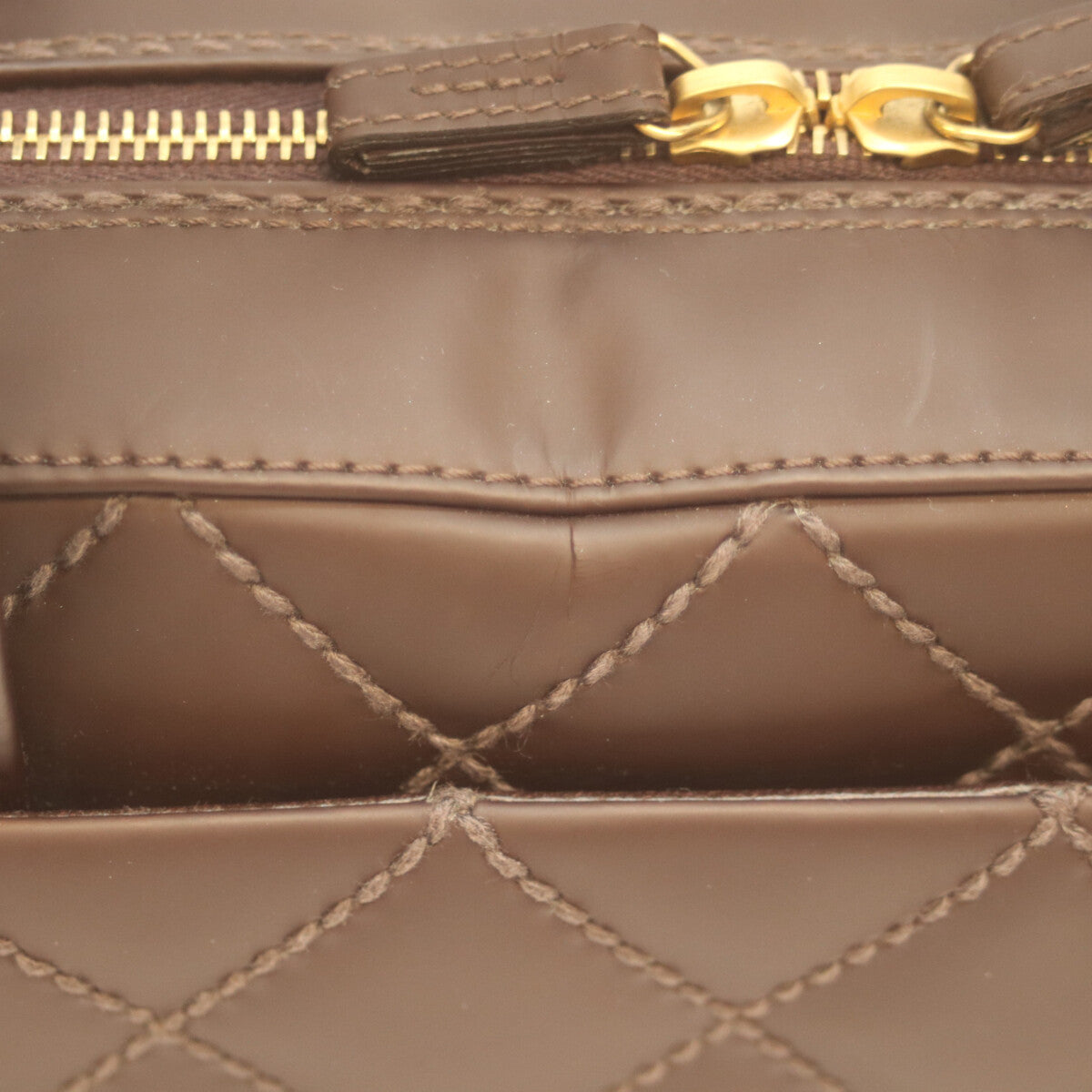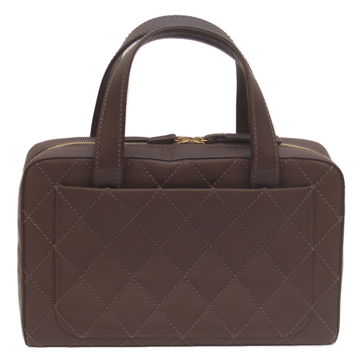 CHANEL シャネル 8番 ブラウン ワイルドステッチ Wファスナー ミニボストン ハンド ボストンバッグ