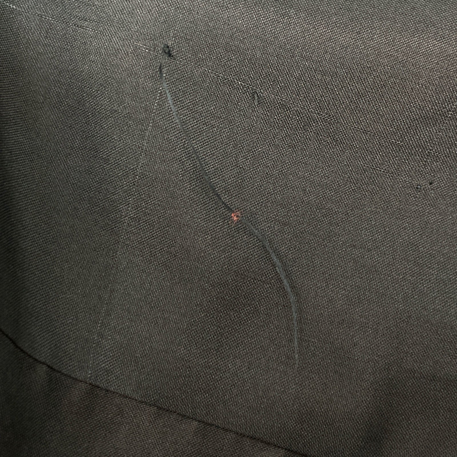 脇に補修跡がございます。 後ろ身頃上部に糸引きがございます。 表示タグがございません。 |