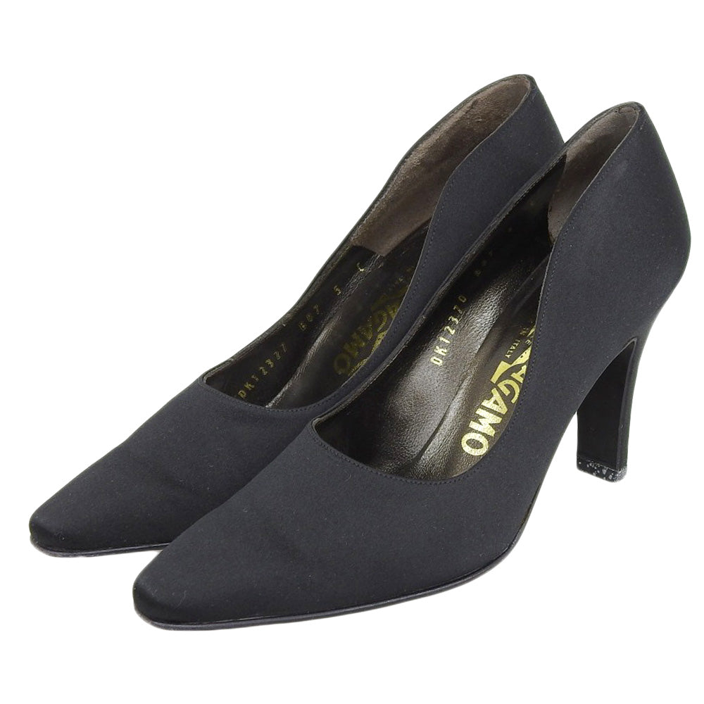 Salvatore Ferragamo サルヴァトーレフェラガモ 美品 サテン パンプス レディース ブラック 5 シューズ 5