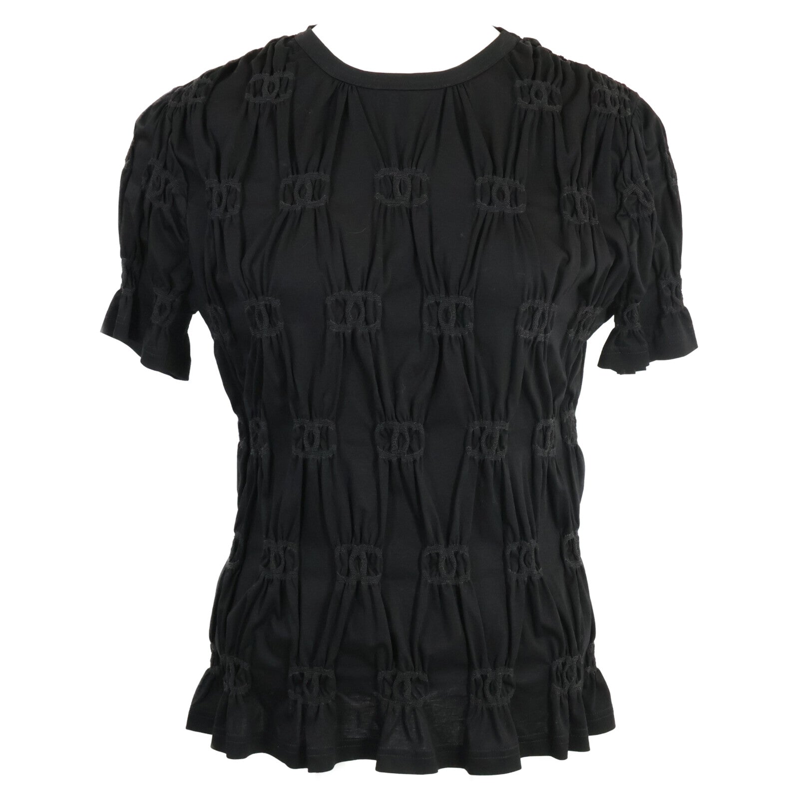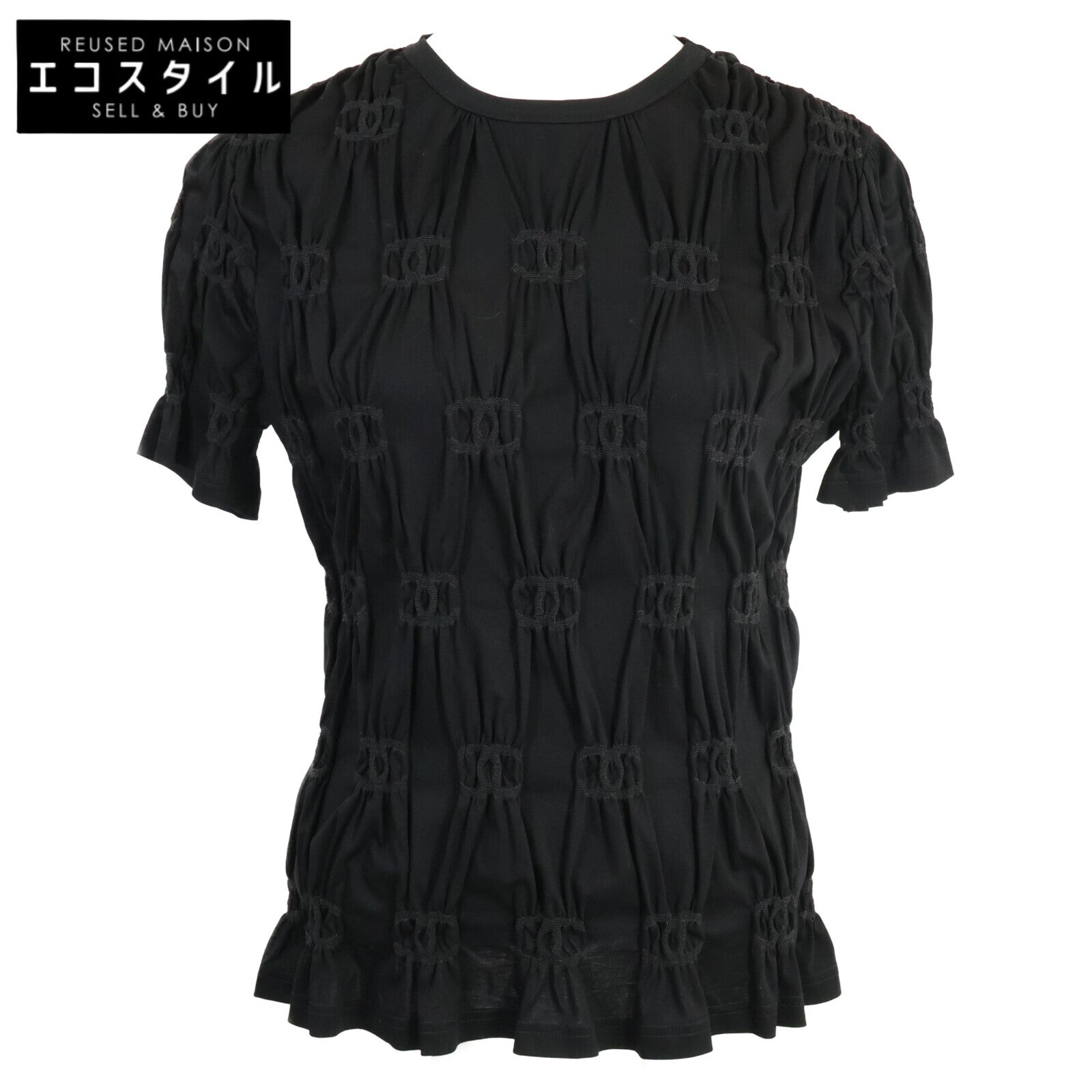 CHANEL シャネル 【美品/国内正規/22年製】P71037K10173 クルーズ ココマーク シャーリング 半袖カットソー/ トップス XS