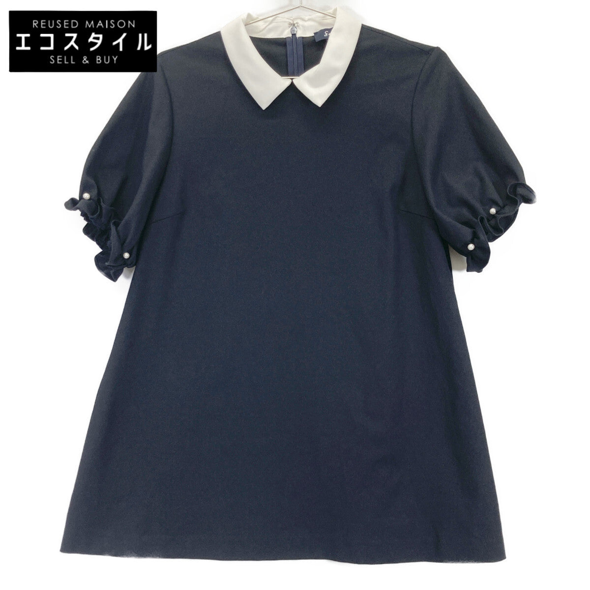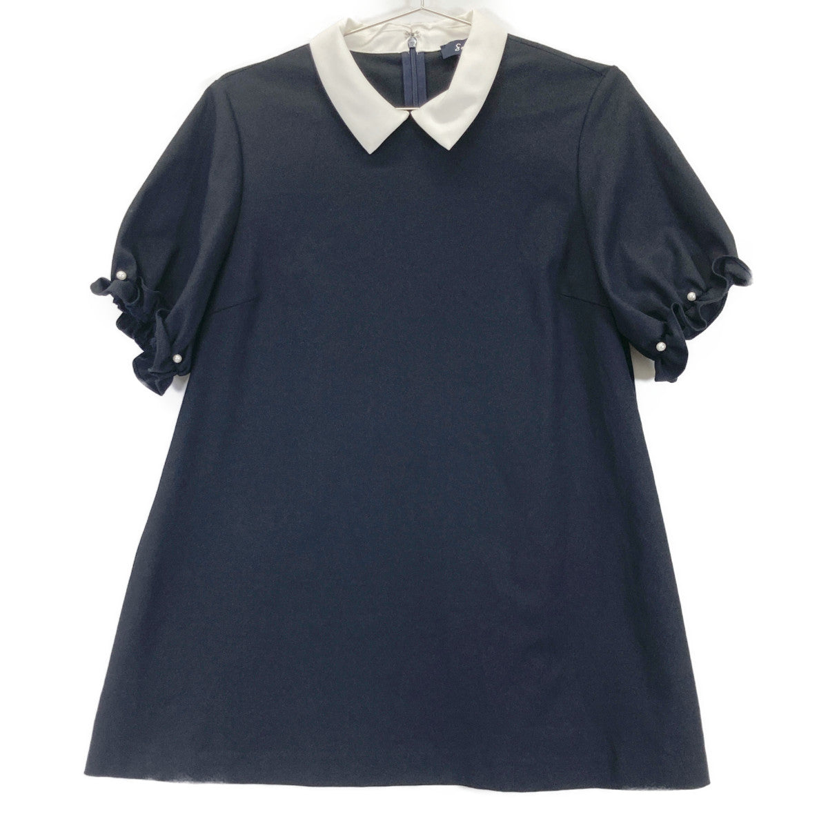 | タイプ | ブラック×ホワイト リネン混 フェイクパール バイカラーカットソー |