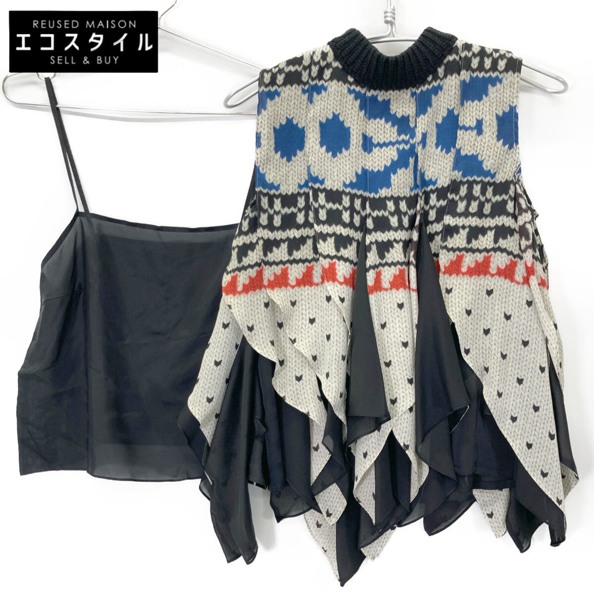 sacai サカイ 24-07428 24年製 マルチカラー パターンニットプリントプルオーバー ノースリーブブラウス トップス 1