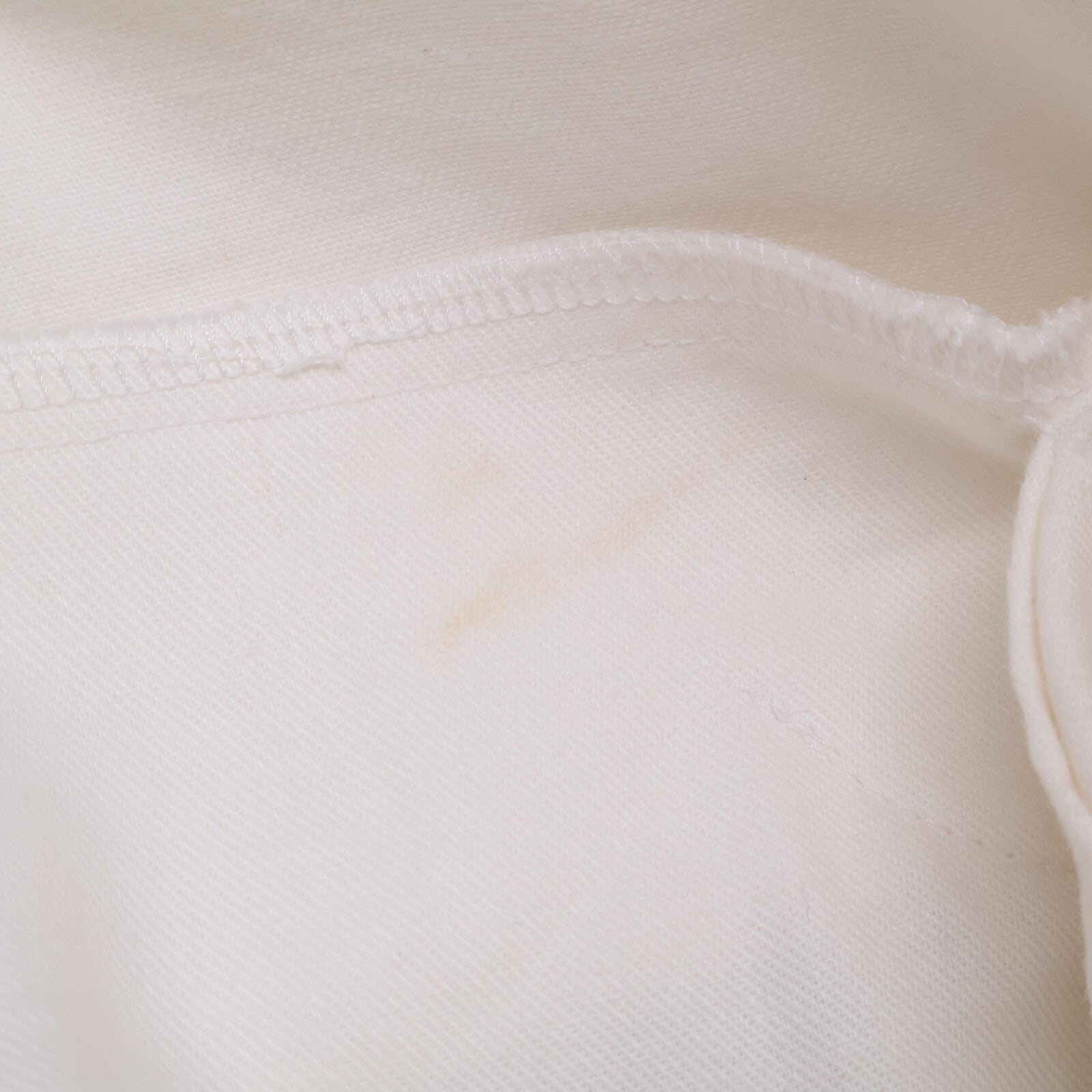 通常使用に伴う若干の使用感のあるお品物でございます。胸元、前身頃下部に若干のシミがございます。 首元タグ横に若干のシミがございます。 |