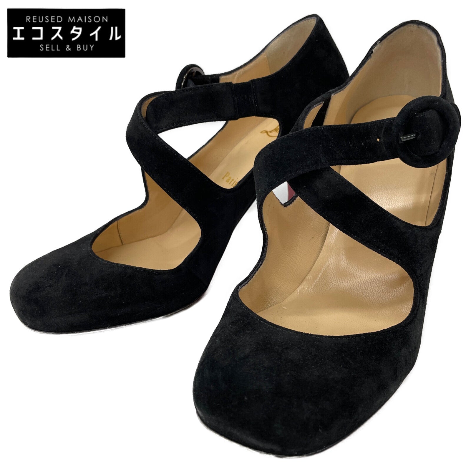 Christian Louboutin クリスチャンルブタン Miss Ellen スエード クロスストラップ スクエアトゥ シューズ 36 1/2