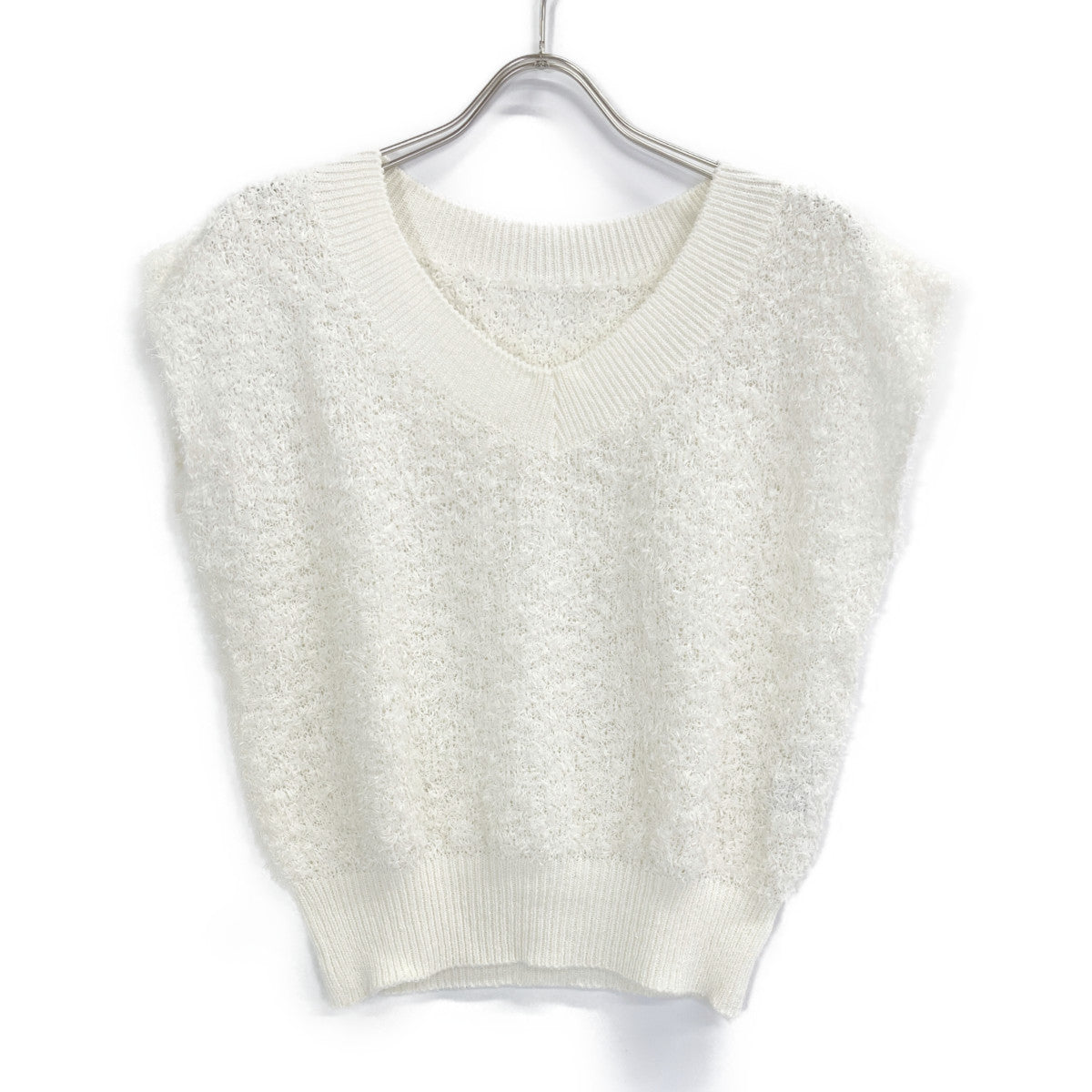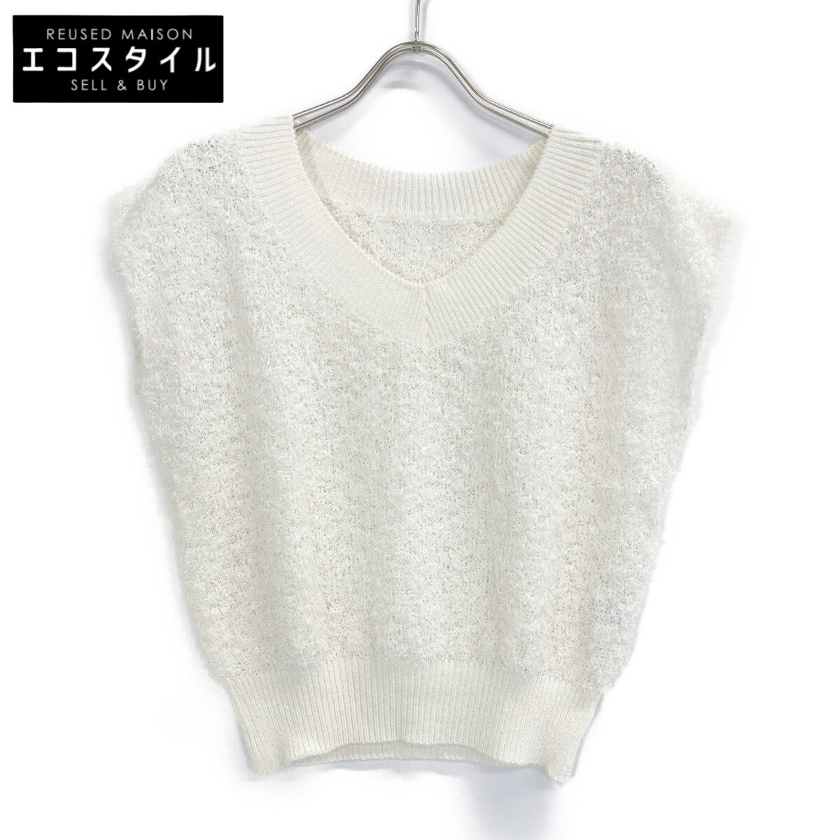 ANAYI アナイ 25年製 ホワイト GIMAフェザーVプルオーバー トップス 36