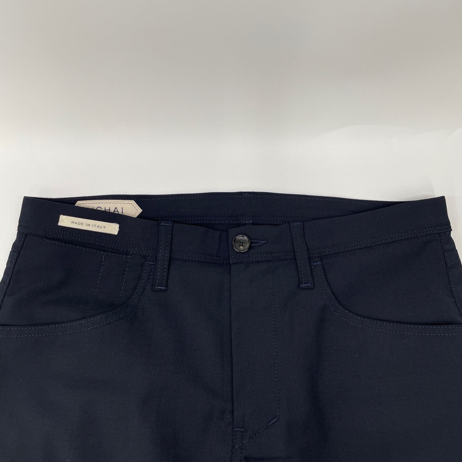 YCHAI イカイ ネイビー ウォッシャブルポリウールストレッチトロピカル5ポケットパンツ ボトムス 32