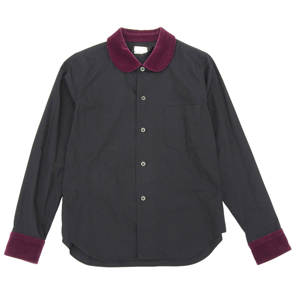 BLACKCOMMEdesGARCONS ブラックコムデギャルソン ラウンドカラー ベロア切り替え シャツ トップス メンズ ブラック XS 1S-B010 トップス XS