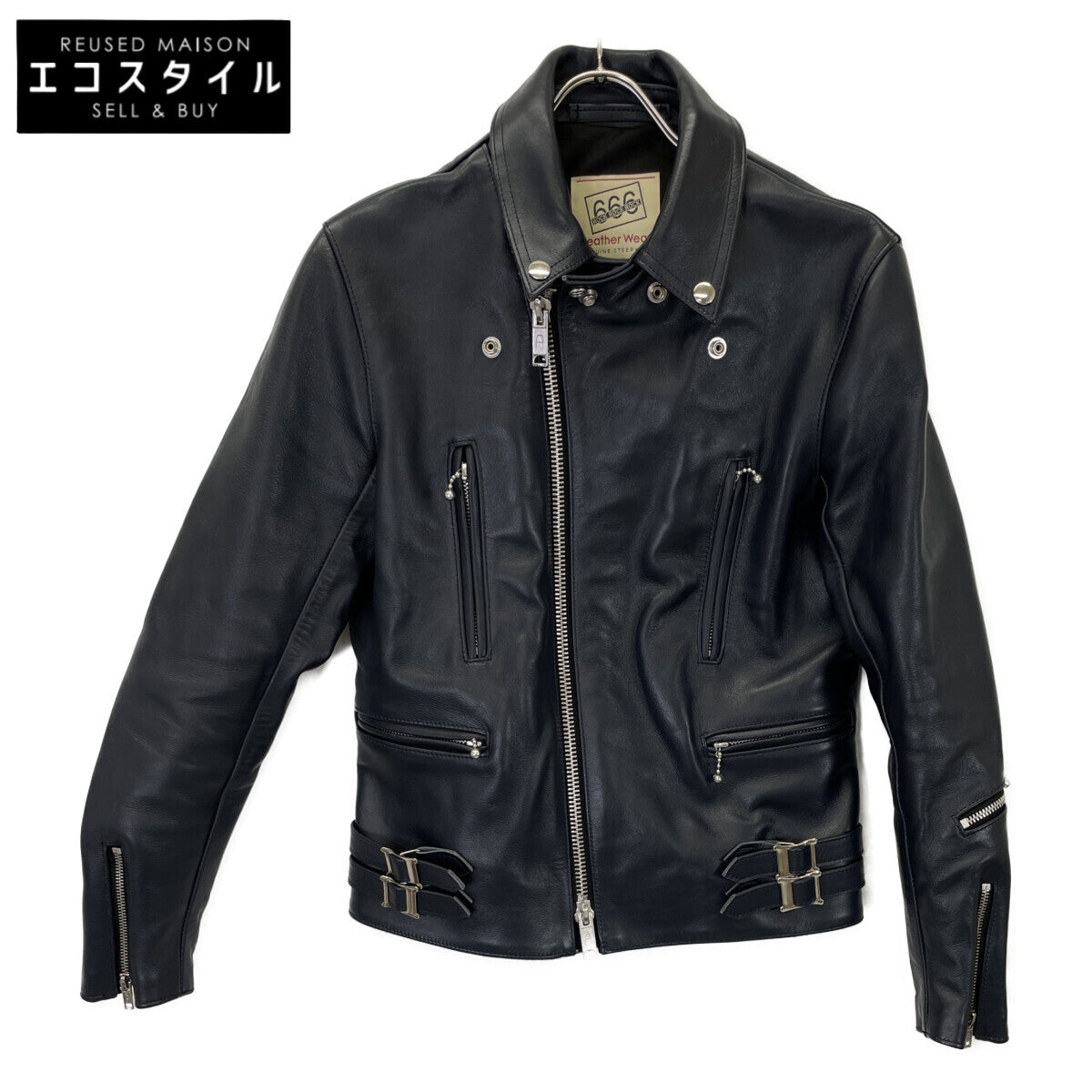 666 666トリプルシックス LJM-1TF ネイビー ステアハイド タイトフィット サイドベルトライダースジャケット ジャケット 34