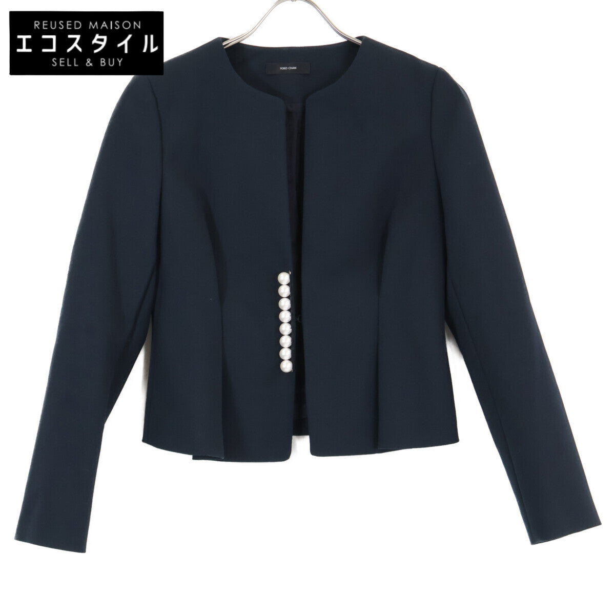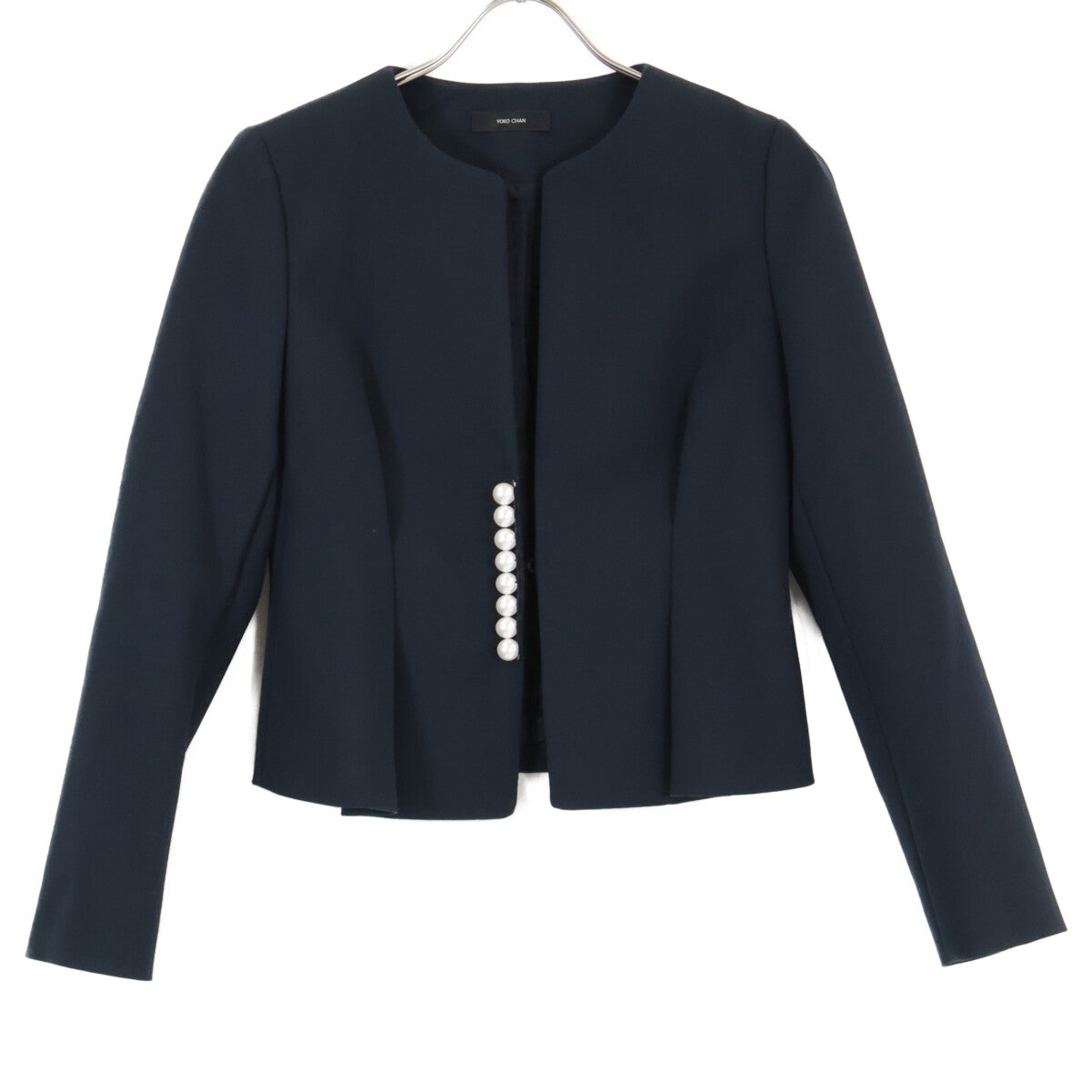 YOKOCHAN ヨーコチャン 【美品】YCJ-121-071 パール付 ノーカラー ショート ジャケット 36