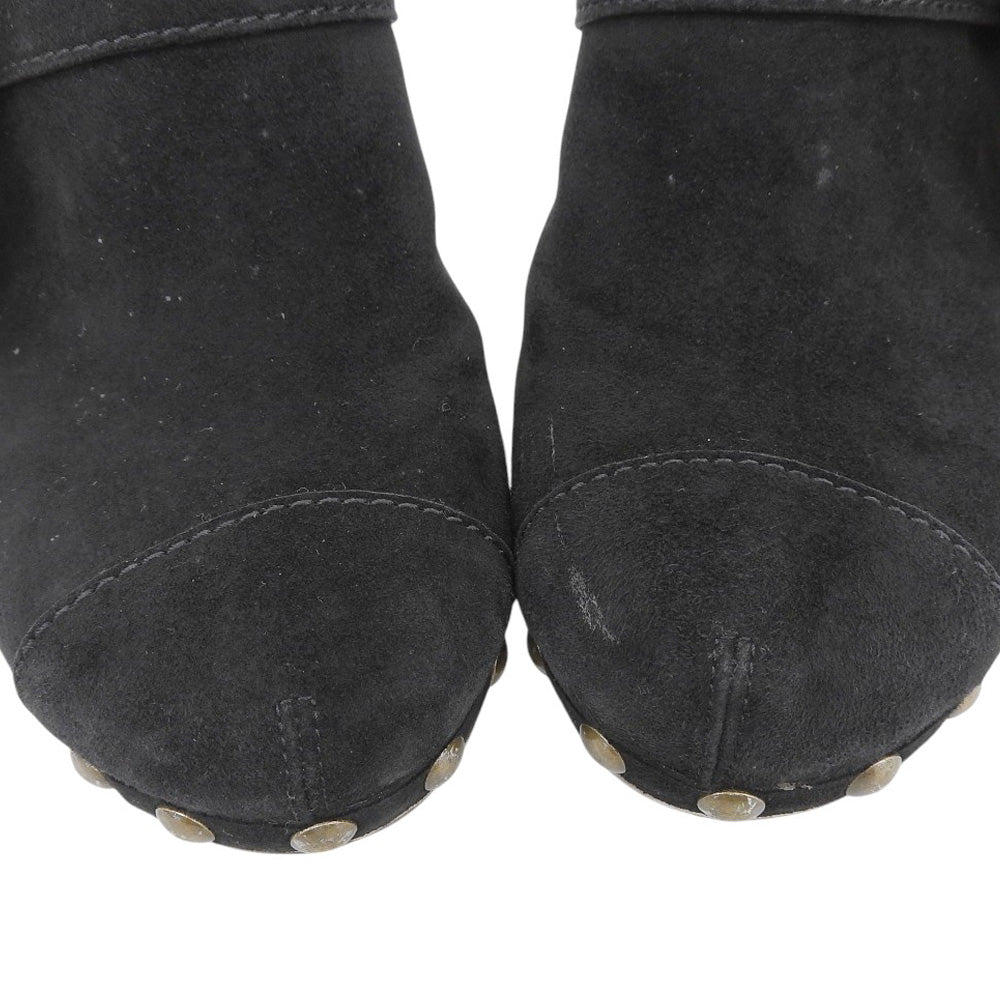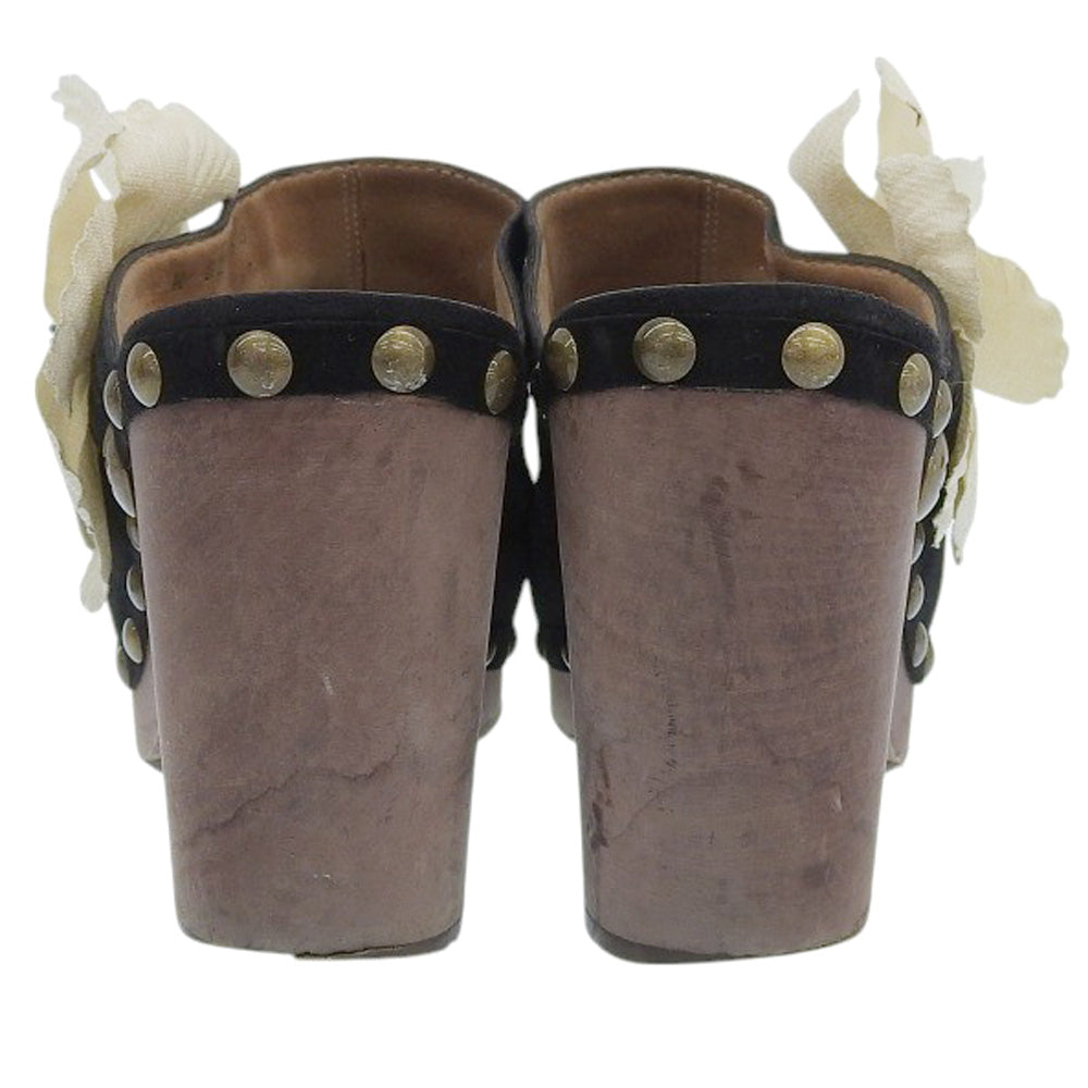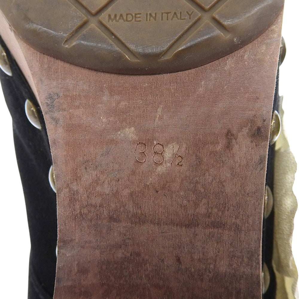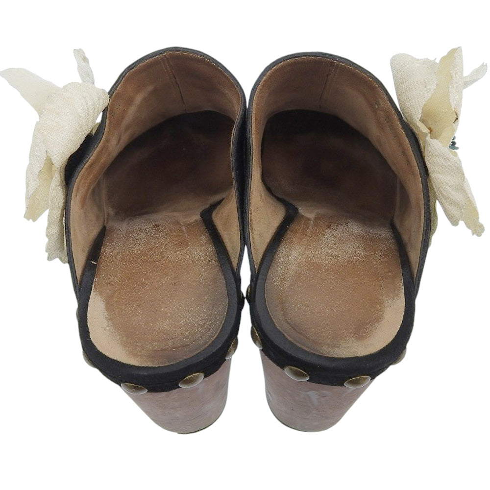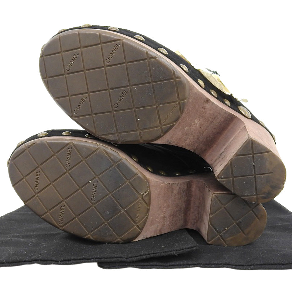 CHANEL シャネル スエード フラワーコサージュ ウッド ヒール サンダル レディース ブラック 38 1/2 シューズ 38 1/2
