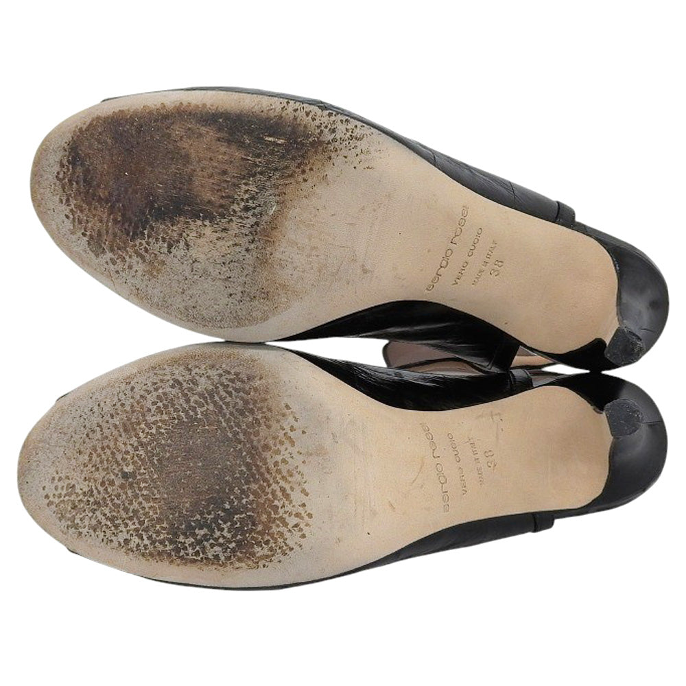 Sergio Rossi セルジオロッシ レザー アンクルストラップ パンプス レディース 黒 ブラック 38 シューズ 38